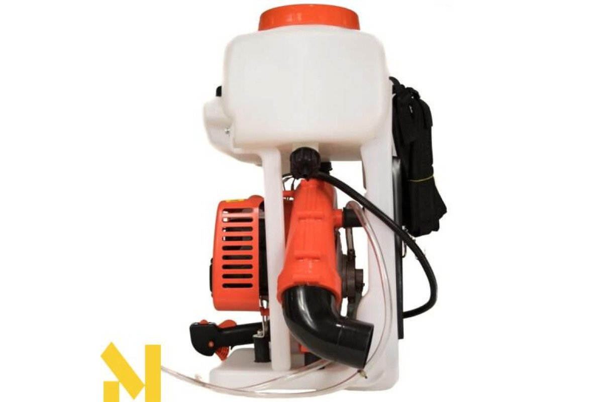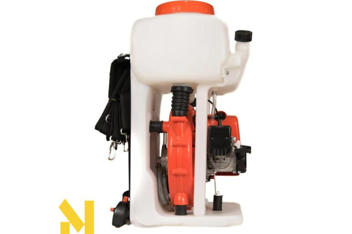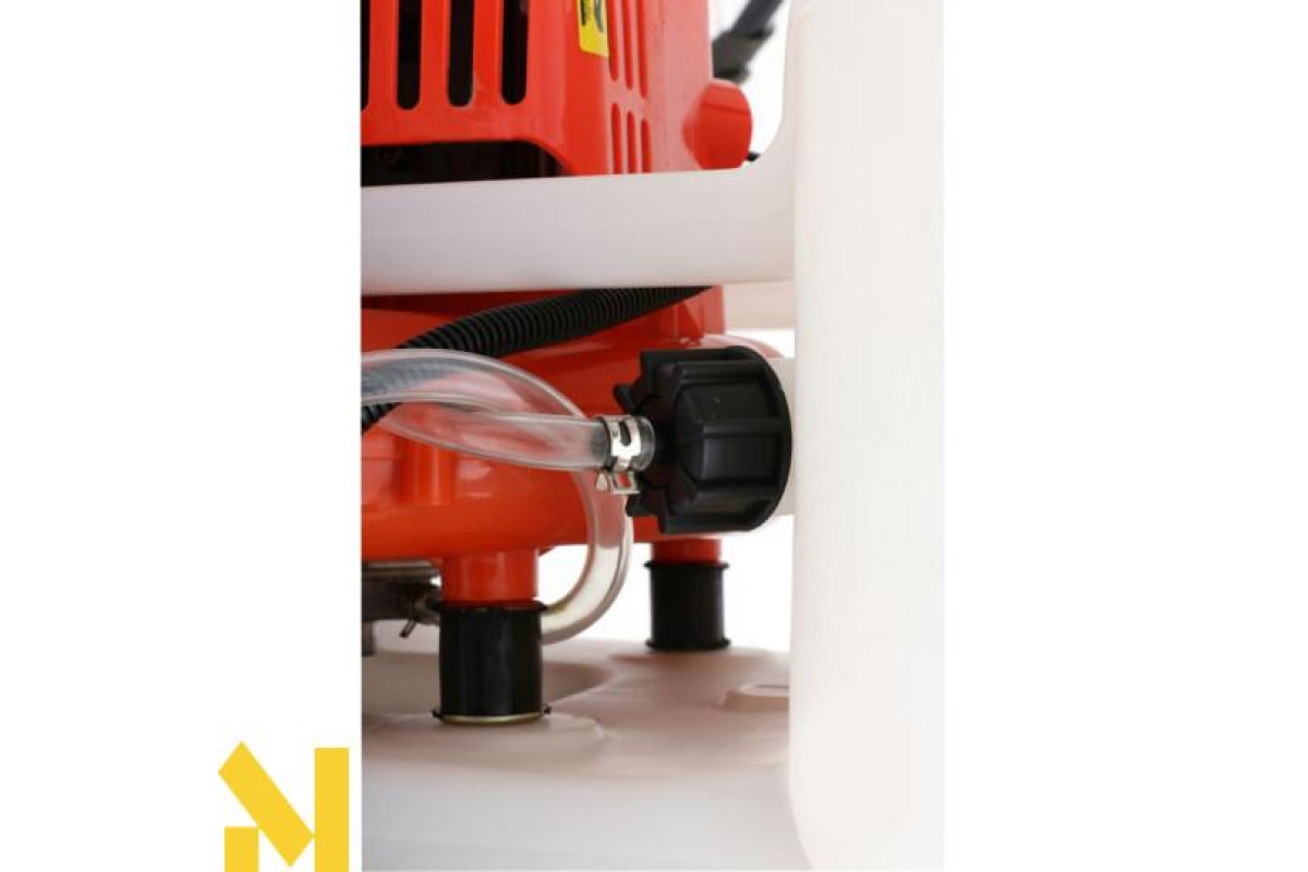 Процес розпилення відбувається за типом дрібнодисперсного туману, що забезпечує швидке та оптимальне розсіювання, охоплюючи максимальний радіус дії. Конструкція мотообприскувача сконструйована таким чином, що завдяки спеціальному у встановленому баку насосу відбувається нагнітання додаткового тиску, за рахунок чого, навіть за мінімальної кількості розчину, Ви зможете обробляти високі рослини.