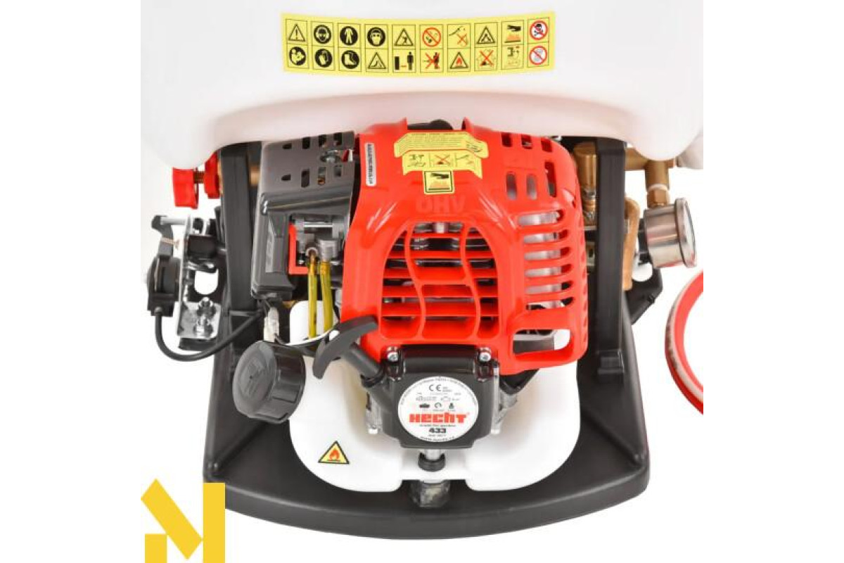 Ранцевий мотообприскувач Hecht 433 з 4-х тактним двигуном внутрішнього згоряння і потужністю 0,75 к.с. є дуже ефективним, якісним і зручним пристроєм для робіт по обприскуванню квітів, городніх рослин. Регулювання тиску і різні розпилювальні сопла дозволяють розпилювати різні види рослин на будь-якій місцевості. Продуктивність обприскувача становить 3-8 л/хв., а вага - 10 кг.