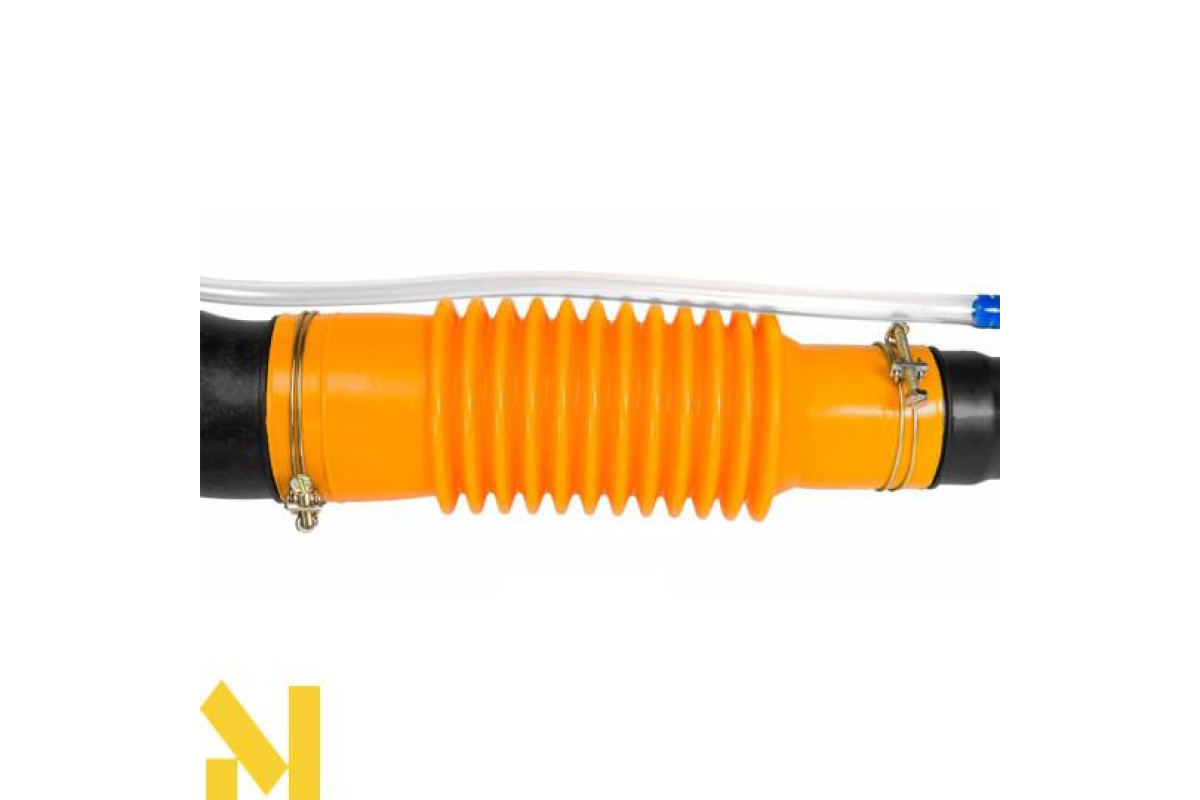 Гнучкий з'єднувач великого діаметру забезпечує достатній потік для прибирання пилу на великій площі. З'єднувач виготовлений з матеріалу, стійкого до перегинів. Цей матеріал подовжує термін служби пристрою.