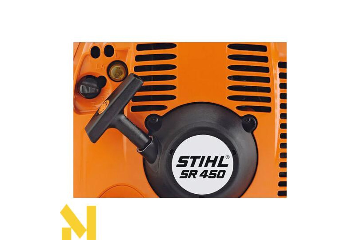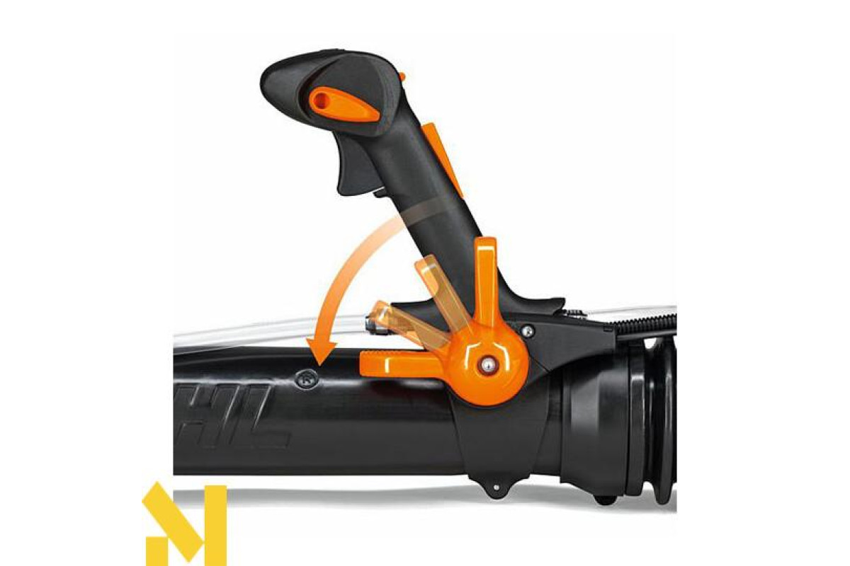 Усі елементи керування пристроєм знаходяться в одній руці, таким чином гарантується комфорт та зручність під час управління пристроєм. Крім елементів управління двигуном тут також знаходиться важіль підключення подачі засобу розпилювання - все однією рукою, дуже зручно, швидко та ефективно.