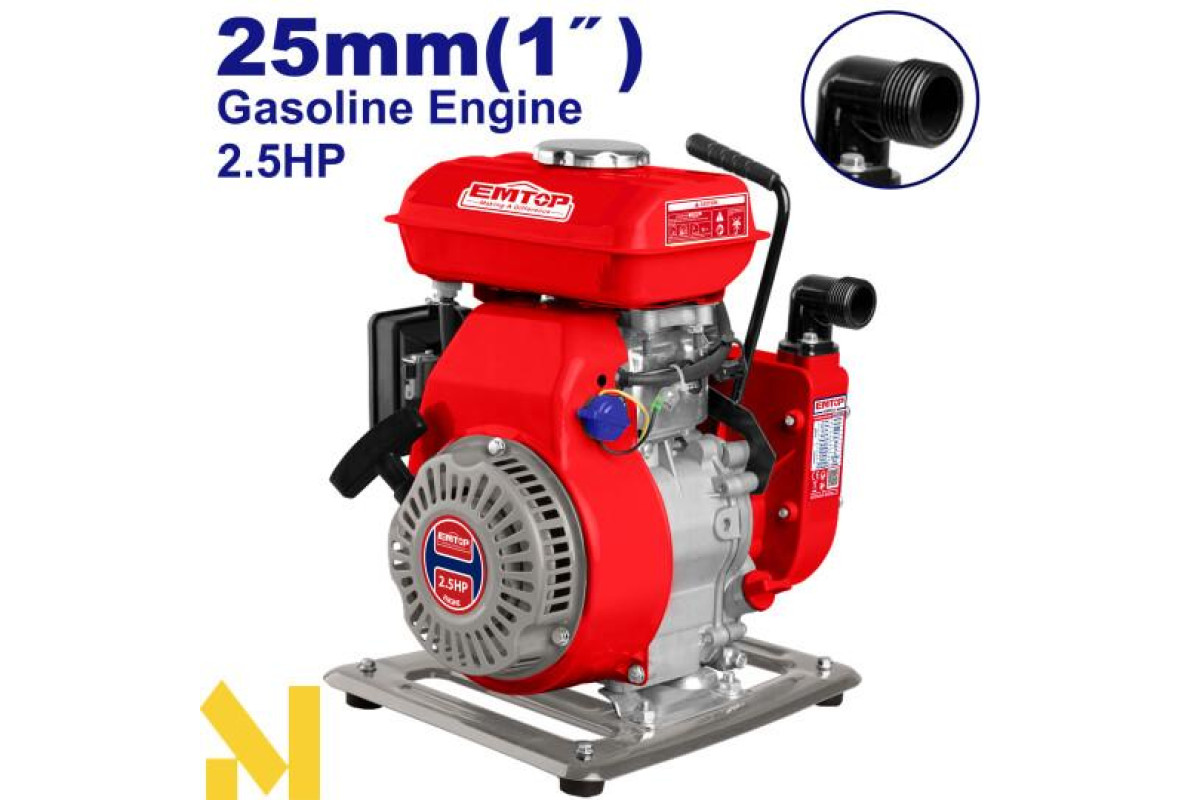 Мотопомпа бензинова EMTOP EGWP2512 кпакована в картонну коробку.