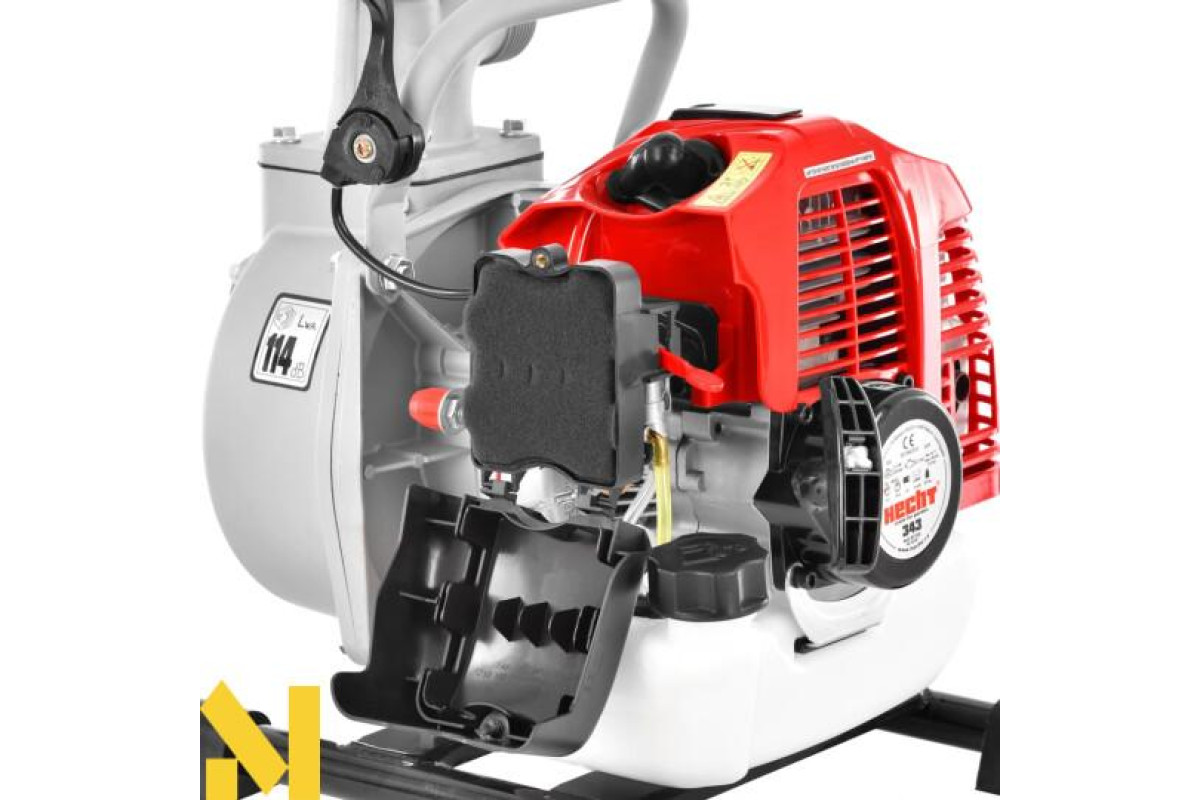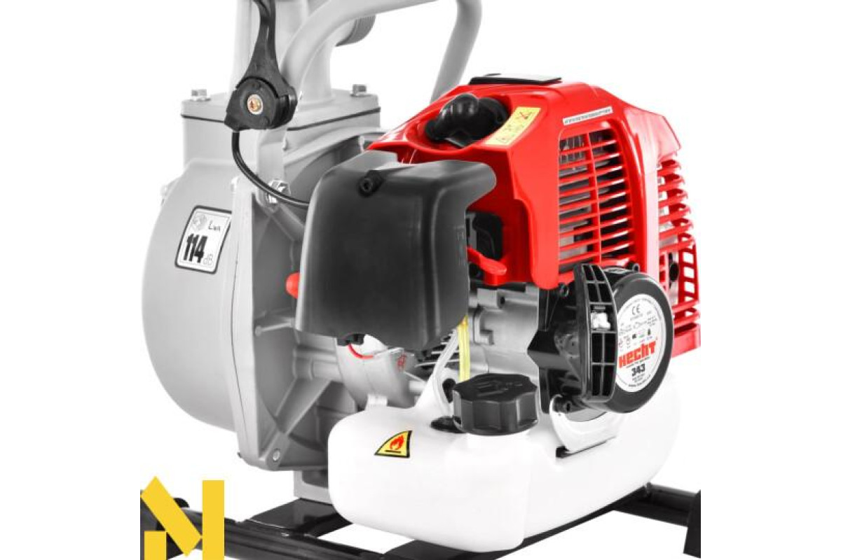 Мотопомпа Hecht 343 високопродуктивна з бензиновим двигуном OHV. Максимальна висота підйому 35 м, максимальна продуктивність 15м3/год, діаметр входу і виходу 40 мм. Максимальна висота всмоктування 8 м. Насос призначений для перекачування незабрудненої води у великих обсягах. Вона добре підходить для відкачування води з басейнів, ставків, водосховищ і т.д.