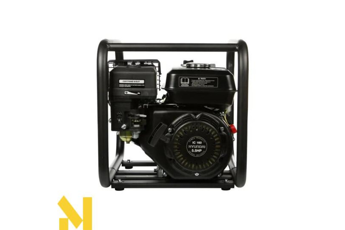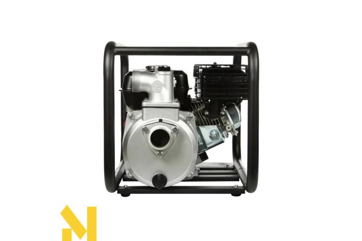 Всі конструктивні елементи мотопомпи компактно зібрані в межах міцної рами, на якій вони надійно закріплені. Сталеві труби великого діаметра приймають на себе удари під час падінь або інших непередбачених ситуацій, оберігаючи головні вузли від руйнування. Метал покритий антикорозійним складом для захисту при роботі в умовах підвищеної вологості. За раму зручно тримати агрегат під час перенесення і транспортування, завантаження на транспортний засіб.
