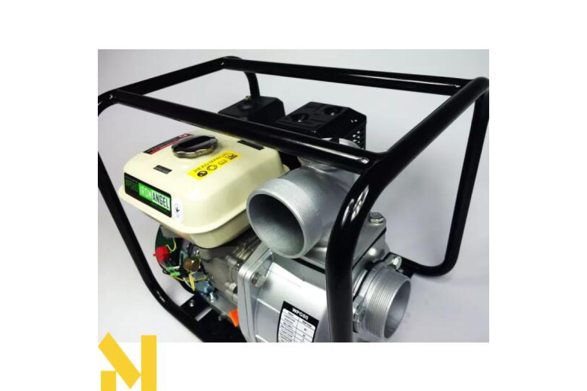 Iron Angel WPG 50 M - продуктивна мотопомпа для чистої води. Апарат приводиться в дію бензиновим чотиритактним двигуном. Його потужність, що розвивається становить 6.5 кінських сили або 4.4 кВт. Верхнє розташування клапанів дозволяє економити паливо. Це означає, що однієї заправки вистачить для тривалої автономності. Ємність бака - 3.6 літра. Запуск здійснюється в ручну. Стартер має продуману конструкцію з пружиною, що полегшує процес.