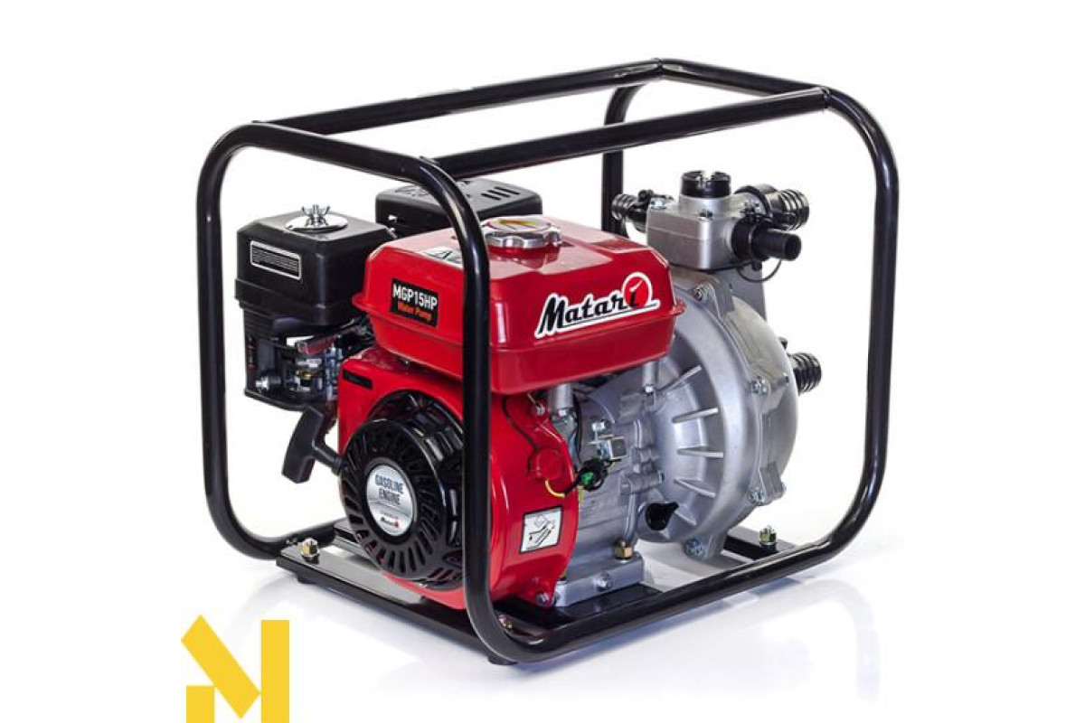 Мотопомпа Matari MGP15HP - це компактне обладнання для перекачування чистої води і підняття її на висоту. Є новою розробкою із серії високонапірних бензинових помп від японської торгової марки Матари. Відмітна особливість невеликі розміри і завужені до 38 см вхідний і вихідний патрубки. Створює максимально потужний тиск водного струменя. Перекачує воду з допустимими домішками розміром до 5 мм. Економна. На одній заправці паливного бака в 3,6 л працює 12 годин при 60% -ному навантаженні. Мотопомпа високого тиску Matari MGP15HP забезпечує якісний полив сільськогосподарських і лісових ділянок, городів і садів. Особливо актуальна для територій, що знаходяться на височині. Часто використовується для гасіння пожеж, оскільки, маючи дуже компактні розміри і вузькі патрубки для шлангів, піднімає воду на висоту на 55 метрів. Застосовується для осушення басейнів і водойм з невеликою кількістю піску і бруду. Працює і на подачу води в будинок, котедж, на дачу. Незамінна в будь-яких ситуаціях, де необхідний високий тиск.