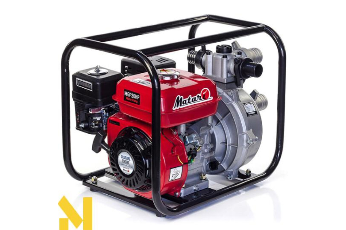 Мотопомпа Matari MGP20HP це високоякісний пристрій, призначений для передачі на відстань і викачування води без домішок бруду. Допускається мінімальні частинки піску, мулу, грунту діаметром до 5 мм. Відмітна особливість компактні габарити і стандартні патрубки на 50 мм, вхідний і напірний. Підвищена швидкість обертання крильчатки насоса і його будова націлені на те, що дати користувачеві максимально високий натиск водяного струменя. Цей показник зафіксований на рівні 65 метрів. Агрегат належить до новітніх розробок пожежних мотопомп високого тиску від японської торгової марки Матари. Дуже економний у споживанні пального. Здатний працюватиме 10 годин без дозаправки, використовуючи паливний бак ємністю 3,6 л.