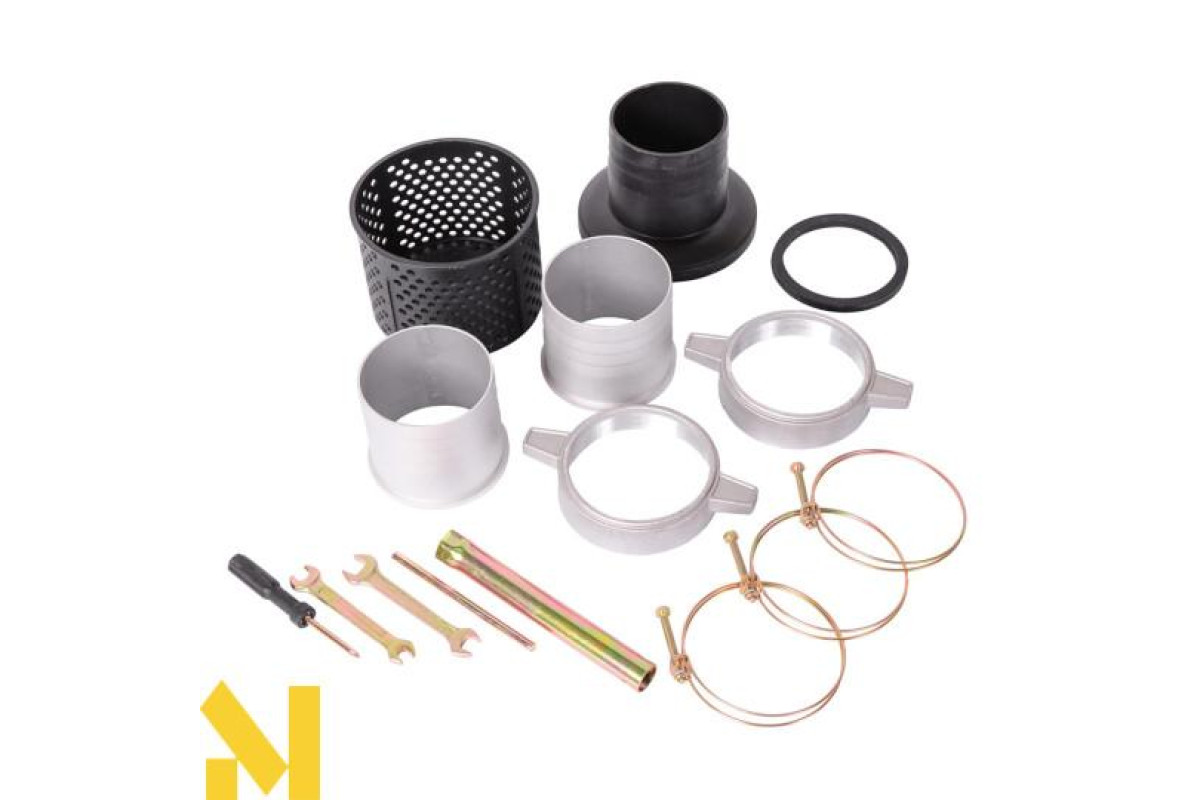 Вода перекачується за допомогою рукавів, які приєднуються до всмоктувального та нагнітального патрубків, діаметром 100 мм. Для надійності з’єднання до комплекту входить набір хомутів, штуцерів, гайок і ущільнювачів.