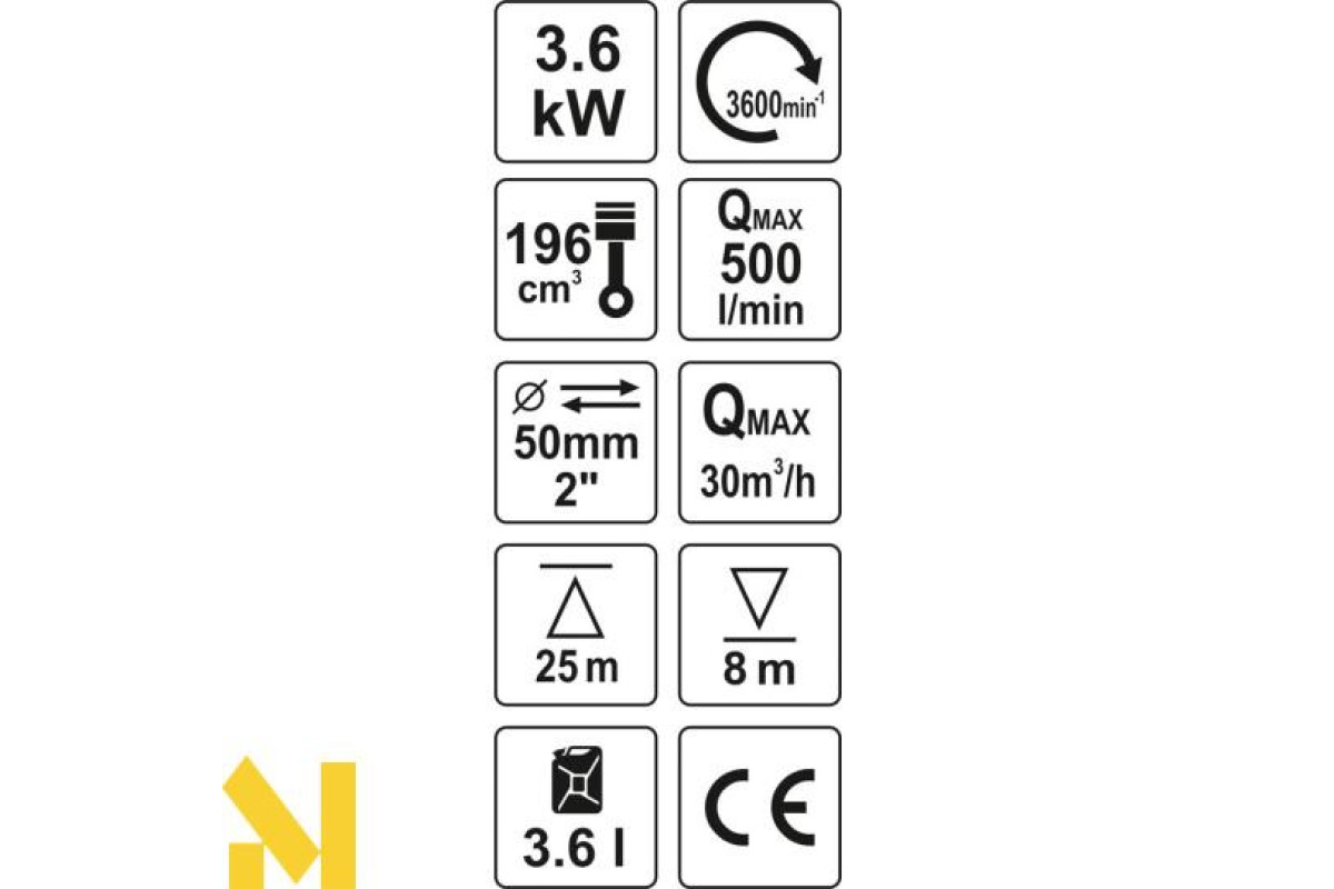 Насос призначений для перекачування великих об'ємів води. Для рятувальних робіт при аваріях і несприятливих метеоумовах. Насос і двигун укладені в сталевій рамі, яка захищає від пошкоджень і полегшує транспортування.
