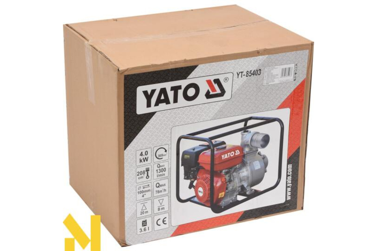 Насос і двигун укладені в сталевій рамі, яка захищає від пошкоджень і полегшує транспортування. Для рятувальних робіт при аваріях і несприятливих метеоусловіях.Насос має датчик рівня масла, який зупинить роботу двигуна, або не дозволить запустити двигун в разі занадто низького рівня масла. Верхній з'єднувач служить випускним отвором для води, нижні для забору води. В обидва роз'єми підключіть шланги за допомогою відповідних з'єднувальних муфт, які забезпечують повну герметичність з'єднань. Як паливо слід використовувати неетилованим бензином з октановим числом 93.