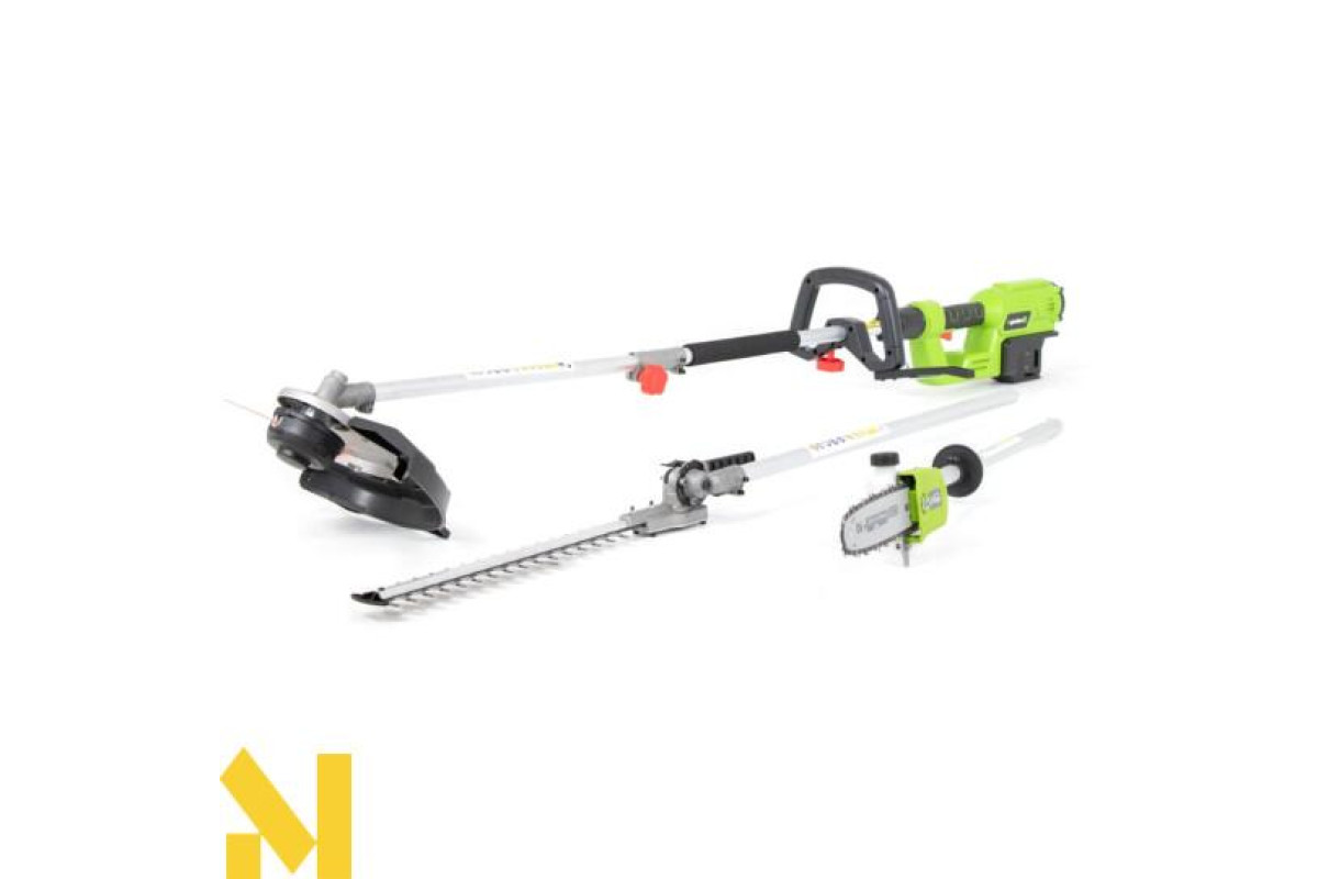 Акумуляторна коса 4в1 4garden AK22MULTI - це, здавалося б, нехитрий пристрій, який стане в нагоді в багатьох садових роботах і допоможе вам не тільки з вашим газоном. Залежно від використовуваного ріжучого механізму, це обладнання може стати косою, пилкою або ножицями. Робоча ширина кущі - 35 см, ножиць - 41 см, бензопили - 25 см. Пристрій працює від двигуна 2×20 В і акумулятора 2,0 або 4,0 Ач, що забезпечує максимальний час роботи 15 або 30 хвилин.