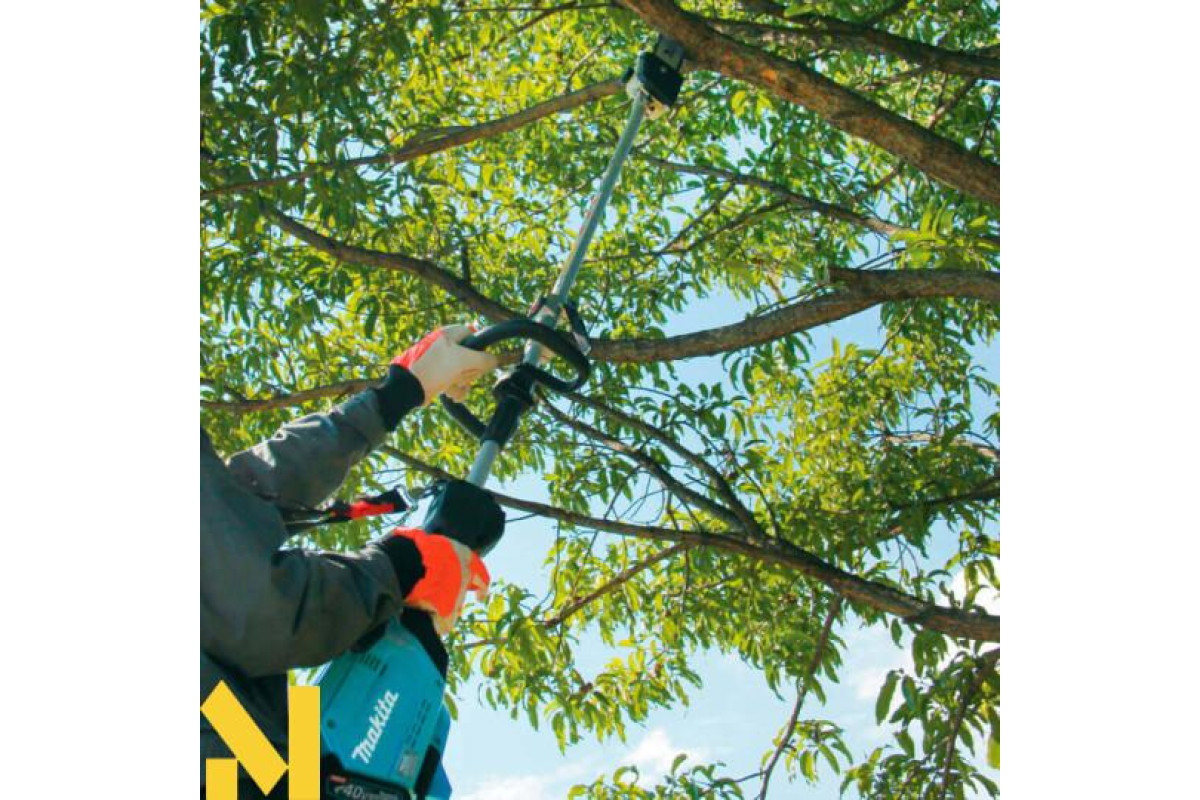 36-вольтовий інструмент Makita UX01GZ допоможе ефективно виконувати основні завдання у садку — різати гілки дерев і кущів, косити траву, прибирати сміття з доріжок і газону, розпушувати ґрунт абощо. Залежно від обраної насадки й інтенсивності експлуатації встановлюється оптимальна швидкість — 0-5700/8200/9700 об/хв. BL-мотор автоматично вимкнеться за раптового уповільнення обертання оснастки. Є плавний запуск, константна електроніка, електричне гальмо. Доставляється зі насадкою-висоторізом.