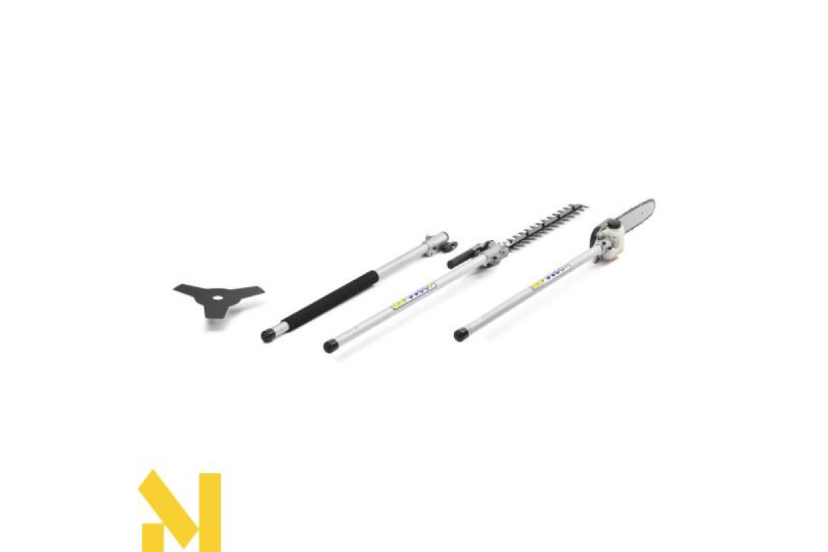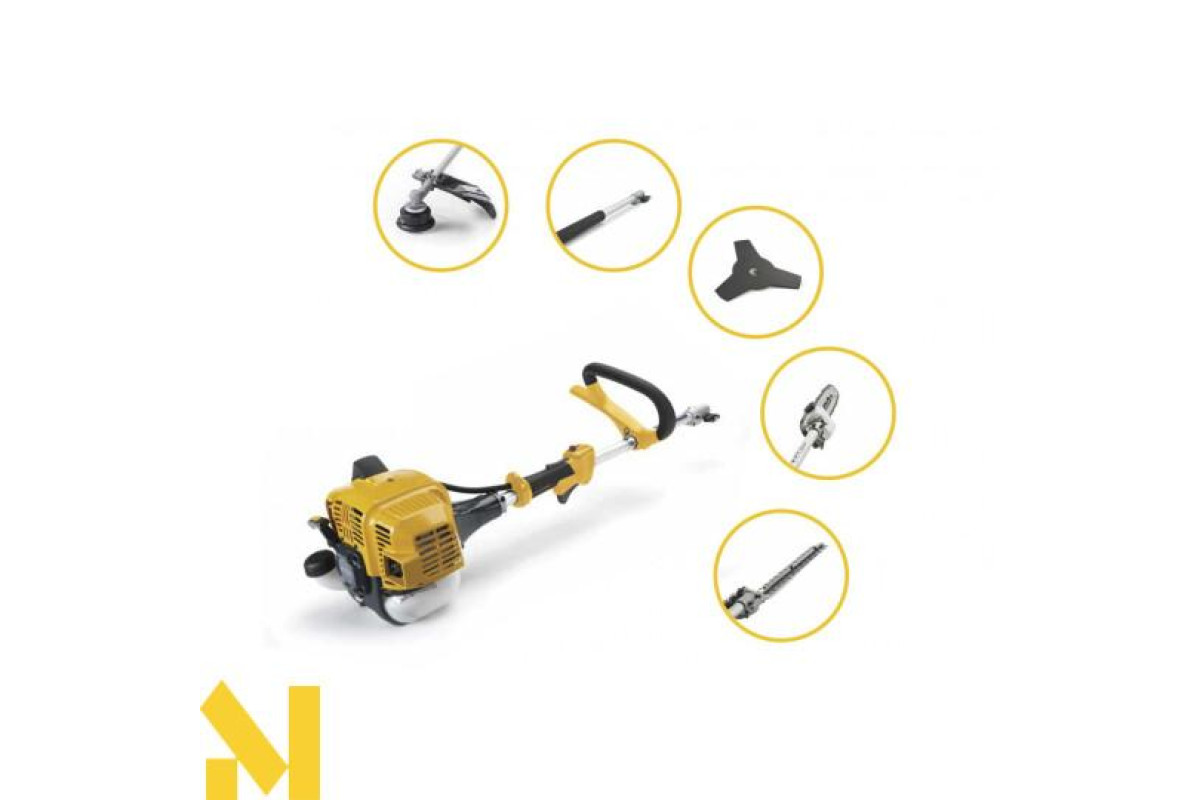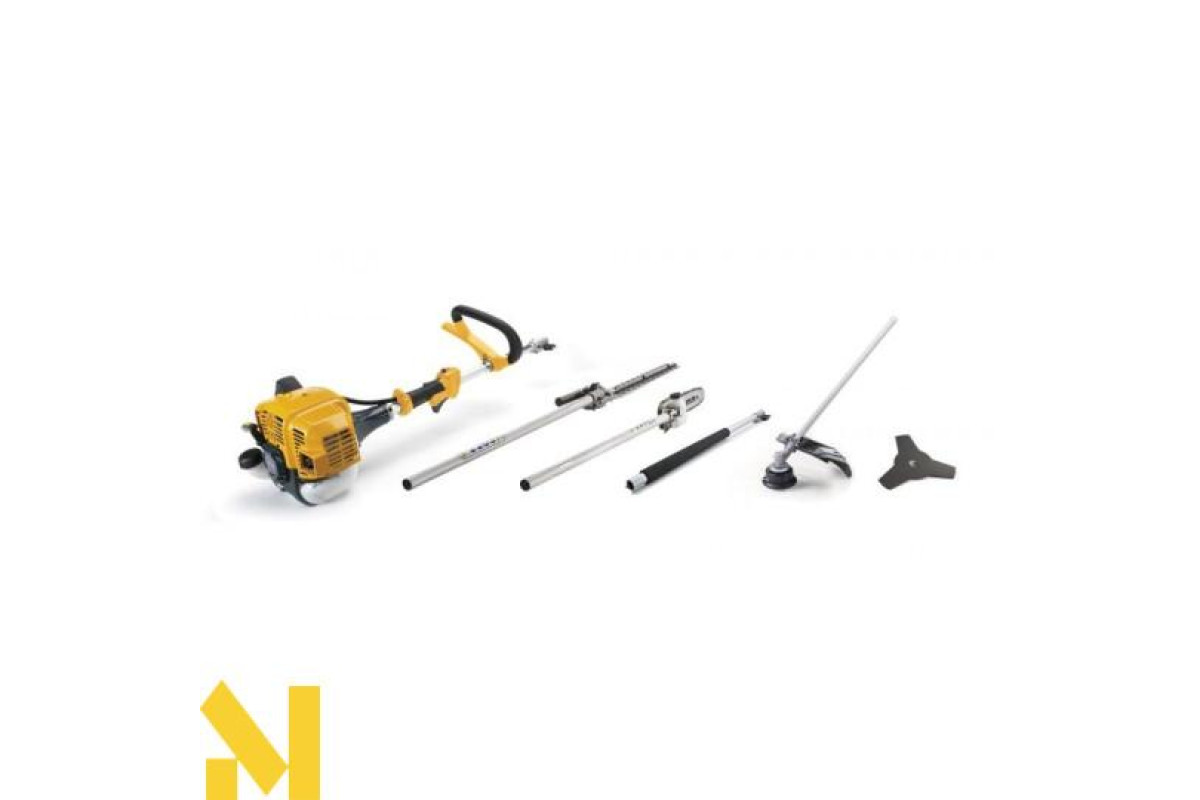 STIGA MT 330 - 5 в 1 - це машина 5 в 1, яку можна використовувати з різними інструментами, що працюють від одного і того ж двигуна з іскровим запаленням, об'ємом 25,4 см 3, корисною потужністю 0,7 кВт. Його можна використовувати як косу з прямим держаком і нейлоновою головкою Tap&Go з функцією швидкого скидання волосіні. Ніж з 3 зубами полегшує обрізання найгустіших чагарників. Для тримера для живоплоту потрібен додатковий ніж довжиною 40 см і головки з кутом повороту 180°, а лезо довжиною 25 см полегшує стрижку. Всі деталі та аксесуари можна використовувати з телескопічною штангою 70 см, яка доступна з однією підвіскою.