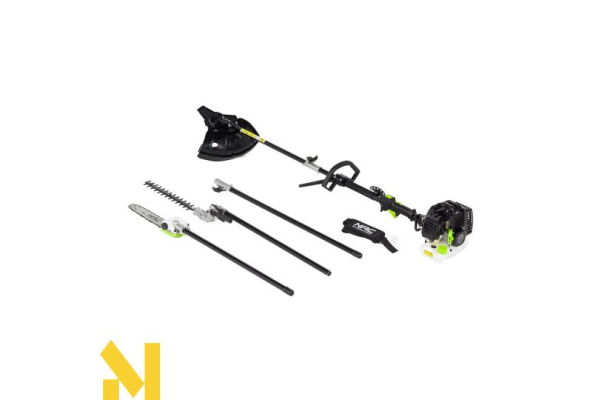 Універсальна косарка NAC BP427-16MU-T - це універсальний продукт для різних сфер застосування. Він оснащений бензиновим косим модулем з можливістю косіння волосінню або диском, бензиновою бензопилою і мотоножицями.