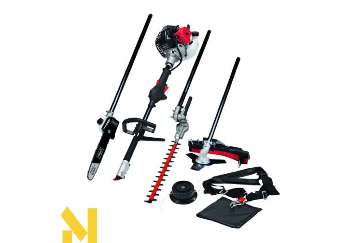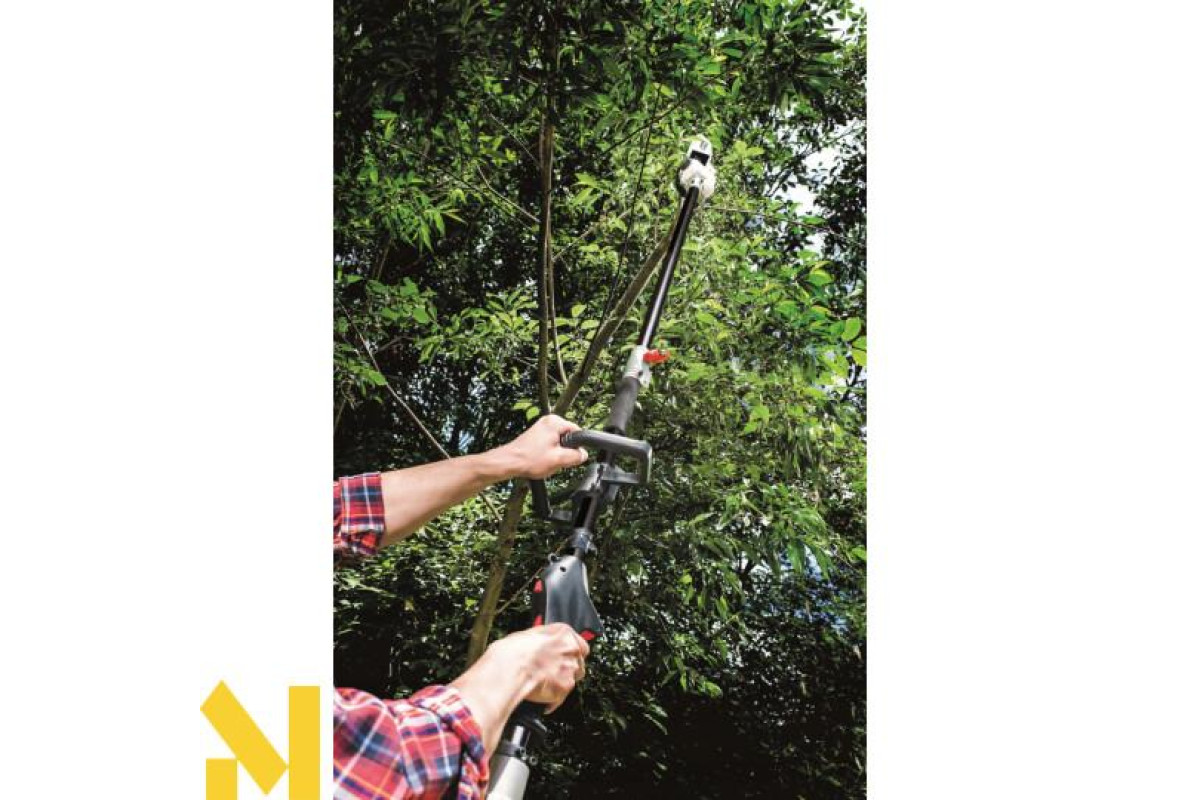 Багатофункціональний пристрій Scheppach 4 в 1 може бути перетворений з тримера для трави в кущоріз або веткоріз одним рухом. У найкоротші терміни ви можете зайнятися садовими роботами, такими як догляд за газоном, догляд за живоплотом і догляд за деревами.