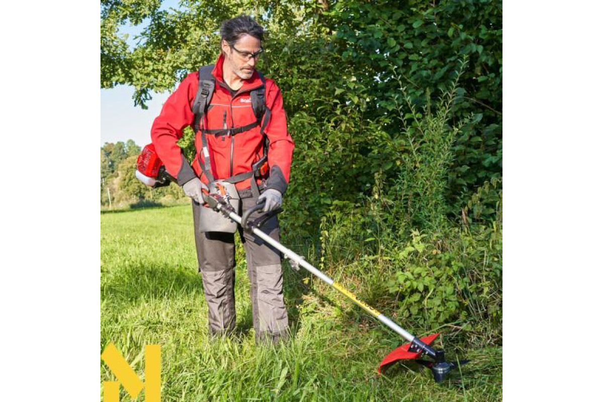 Як мобільна, універсальна бензинова мотокоса, вона не тільки вражає відмінними результатами скошування в перевіреній одиночній якості AL-KO, але й виконує інші завдання з відповідними інструментами. Наконечник тримера з ліскоукладачем Fast and Easy (для легкої заправки волосіні та швидкого намотування без відкриття ліскоукладача) та лезо з 3 зубами входять до комплекту. Мультитул може комплектуватися відповідними додатковими аксесуарами: