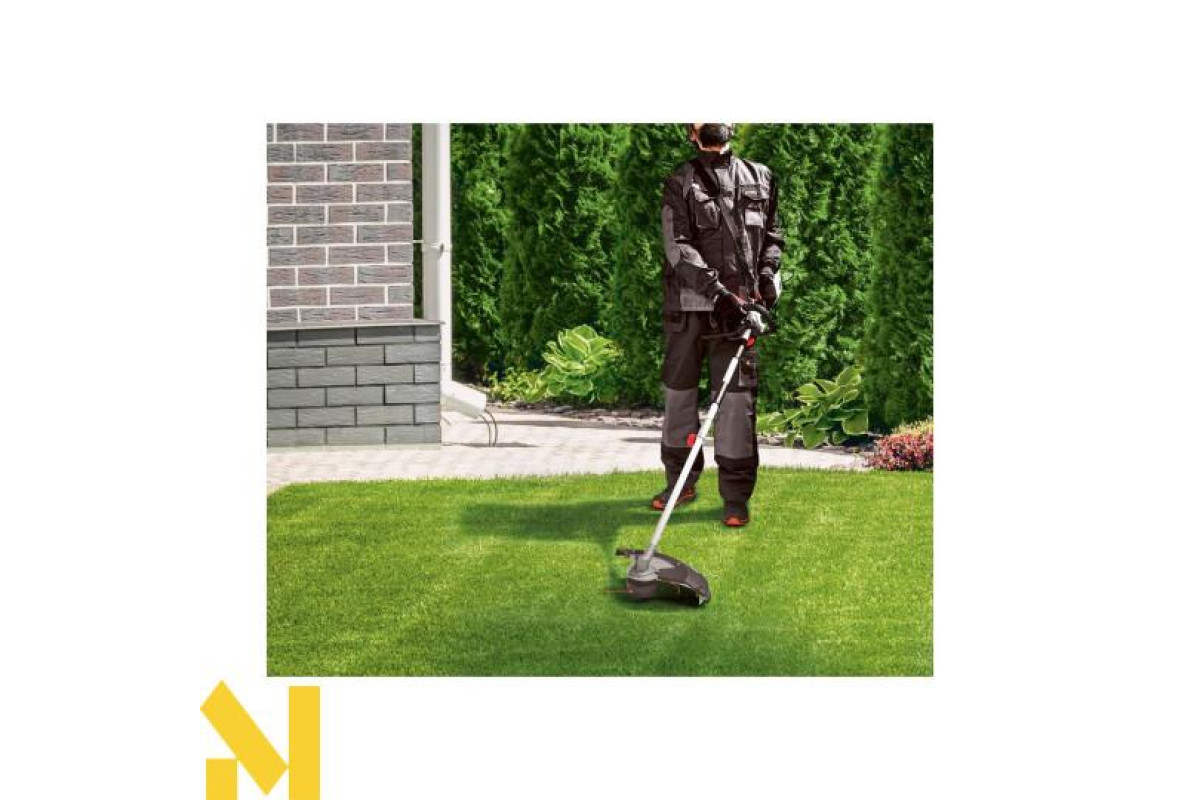 Газонокосарка оснащена двигуном потужністю 900 Вт, який ідеально підходить для точного косіння навколо дерев, під кущами, біля парканів, бордюрів і на пагорбах.
