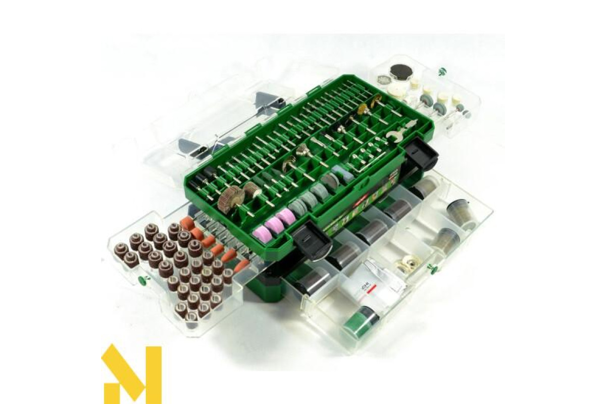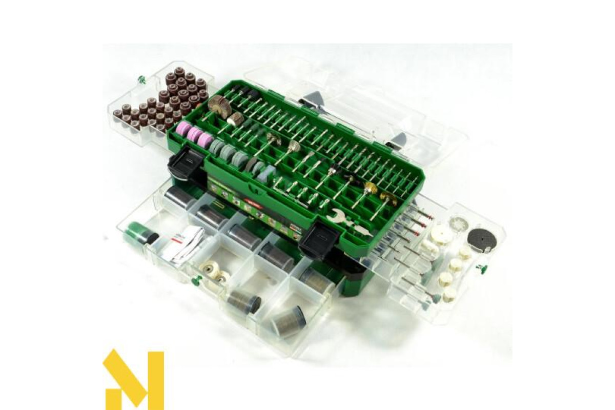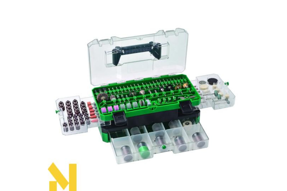 Всі предмети знаходяться в зручному пластиковому кейсі. Виробник спроектував його так, щоб зберегти компактність, але розмістити комплектні елементи. Особлива конструкція дозволяє отримати швидкий доступ до всіх предметів і комфортно переносити кейс. Універсальність забезпечує сумісність з різними матеріалами - деревиною, пластиком, металом і т. Д.