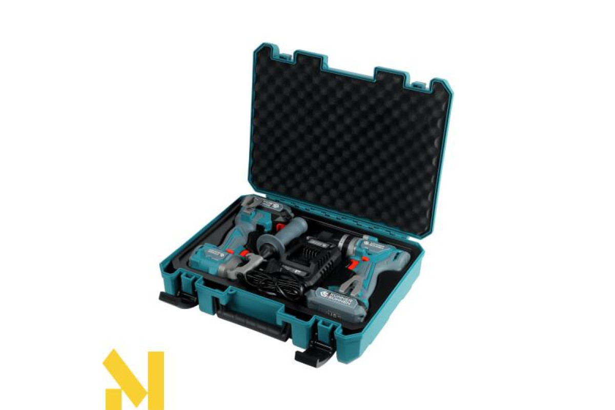 Універсальний бездротовий набір – два інструменти в одному наборі: ударні дриль і гвинтокрут для різноманітних побутових завдань, з 2×2А·год 20В акумуляторами та зарядним пристроєм у кейсі.