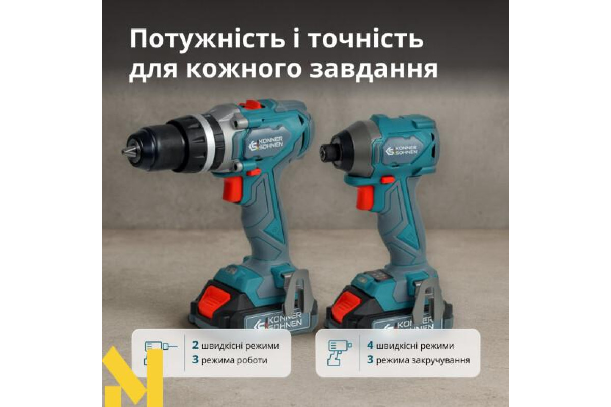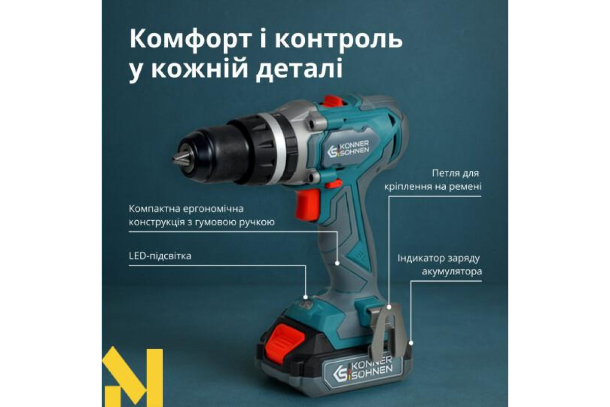 Дриль-шуруповерт акумуляторний ударний Konner&Sohnen ID20V-80 | |