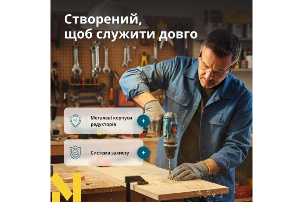 Надійність та довговічність - безщіткові двигуни забезпечують тривалий ресурс, стабільну потужність і менше нагрівання під час роботи, а посилений корпус редуктора з металевими деталями захищає внутрішні механізми від зносу та перевантажень. Система захисту – забезпечує безпеку інструментів і користувача під час роботи, вона включає: захист від перегріву, захист від перевантаження та захист від надмірного розрядження акумулятора.