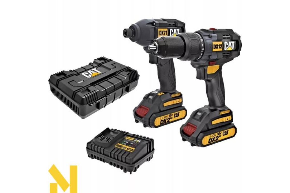 Універсальний набір з інструментів CAT допоможе виконати більшість спеціалізованих робіт і новачку, і майстру. Акумуляторний дриль-шуруповерт CAT DX12 і ударний гайковерт CAT DX71 оснащені потужними безщітковими двигунами та технологіями енергоефективності для оптимізації роботи акумулятора. Пристрої легкі, зручні в роботі та мають комфортний хват та стійкі до ударів.