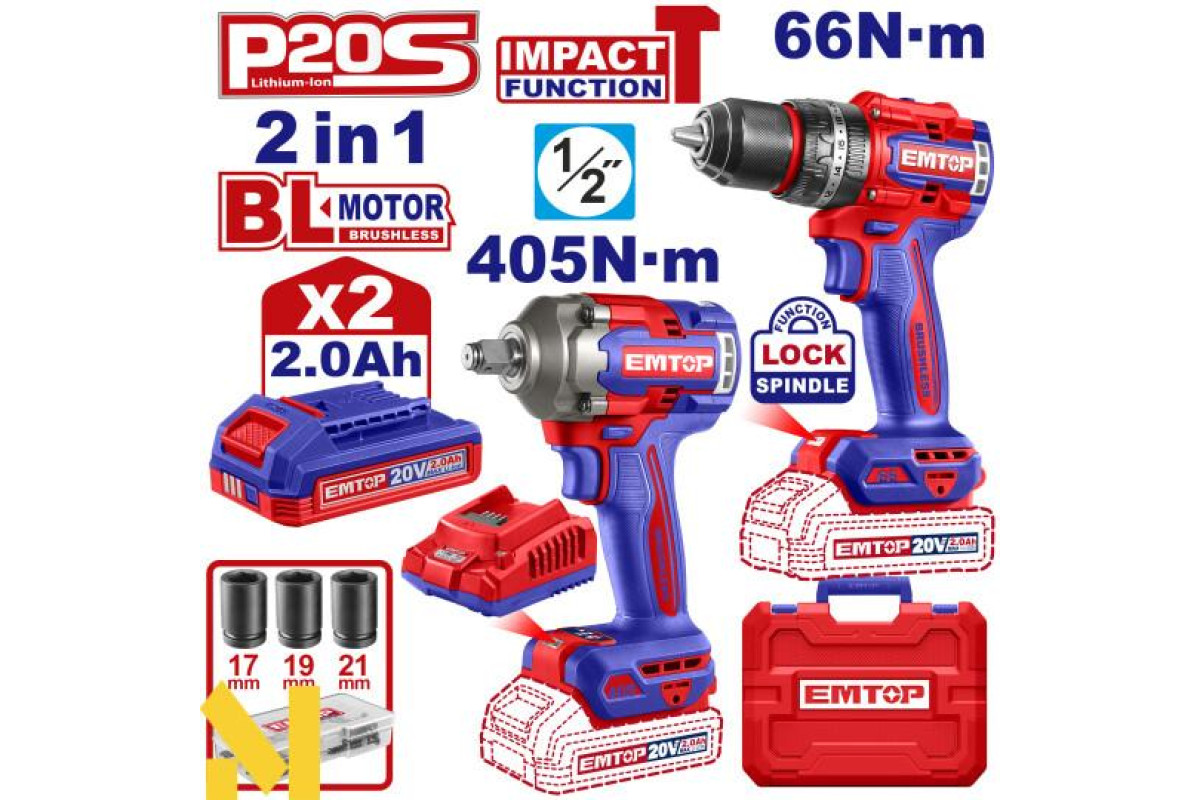 Дриль-шуруповерт ударний акумуляторний EMTOP ECIDL206681