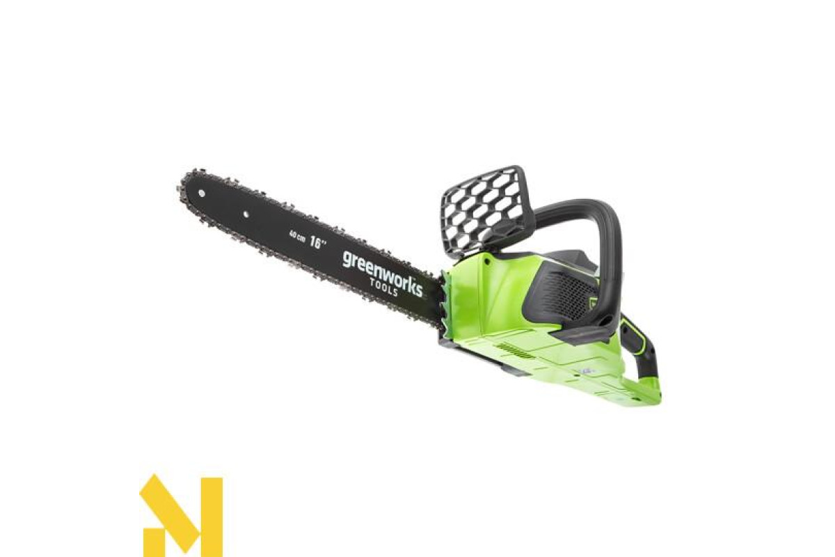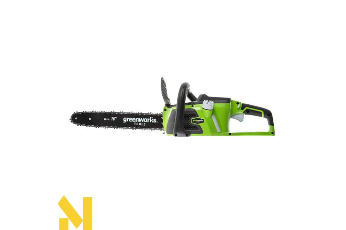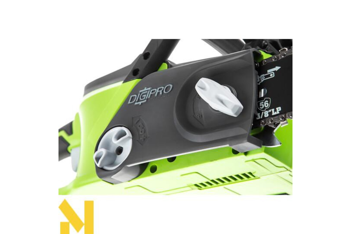 Акумуляторна електропила ланцюгова GreenWorks GD40CS40. Це напівпрофесійна модель для ведення лісового господарства. Дозволяє розпилювати стовбури і колоди, сучки і гілки. Використовується шина і ланцюг виробництва Oregon. Шини Oregon виготовляються з кременистої стали. Кремниста сталь володіє високими характеристиками міцності і легкістю. Ланцюги Oregon економлять енергію, менше зношуючи пилу. Матеріал з якого виготовляються ланки, зменшує вібрацію і віддачу. Підвищується комфортабельність при роботі з електропилкою. Зручна передня рукоятка, дозволить легко керувати електропилкою. Ця модель моментально готова до роботи натисканням однієї кнопки. Завдяки харчуванню від 40V акумулятора пила забезпечує довгу автономну роботу. Даний акумулятор сумісний з іншими пристроями з лінійки G-MAX 40V. Володіє автоматичною подачею масла і механізмом ручного натягу ланцюга. Для безпечної роботи пила оснащена кнопкою включення, запобіжником і ланцюгове гальмо. Ланцюгове гальмо в якості щитка може захистити ваші руки від летять тирси.