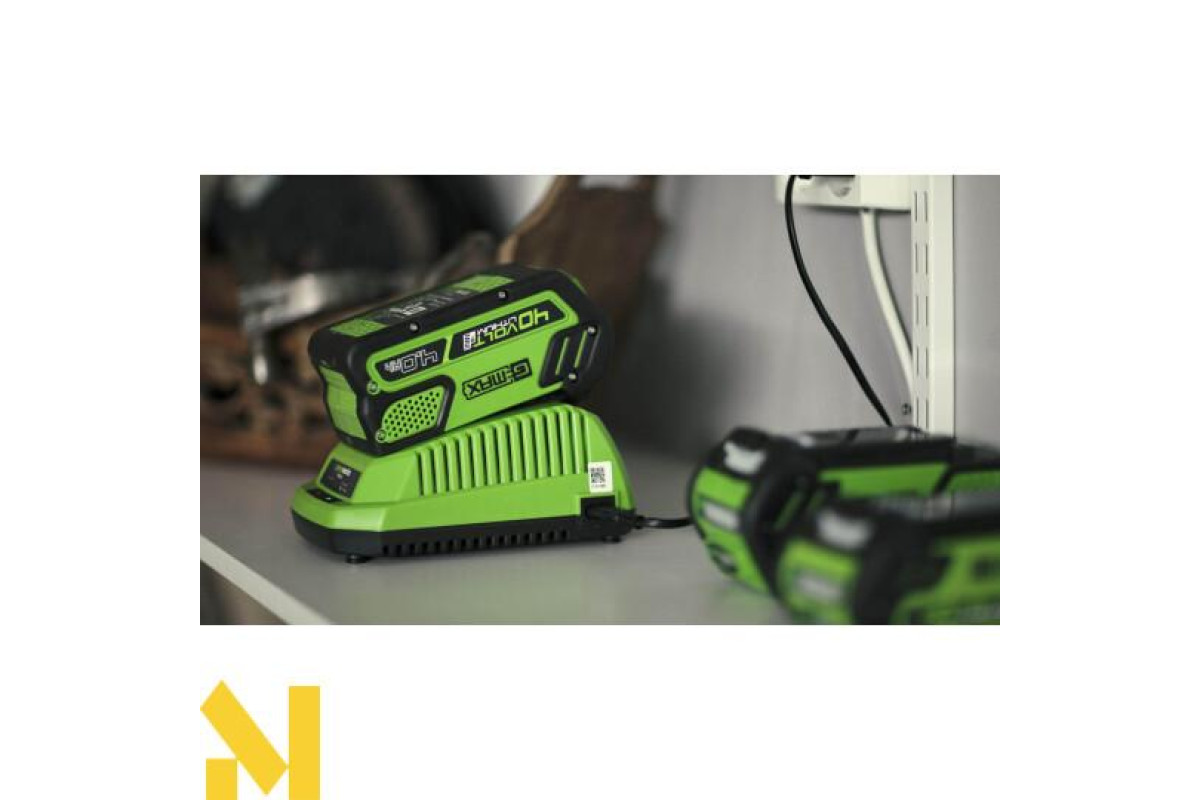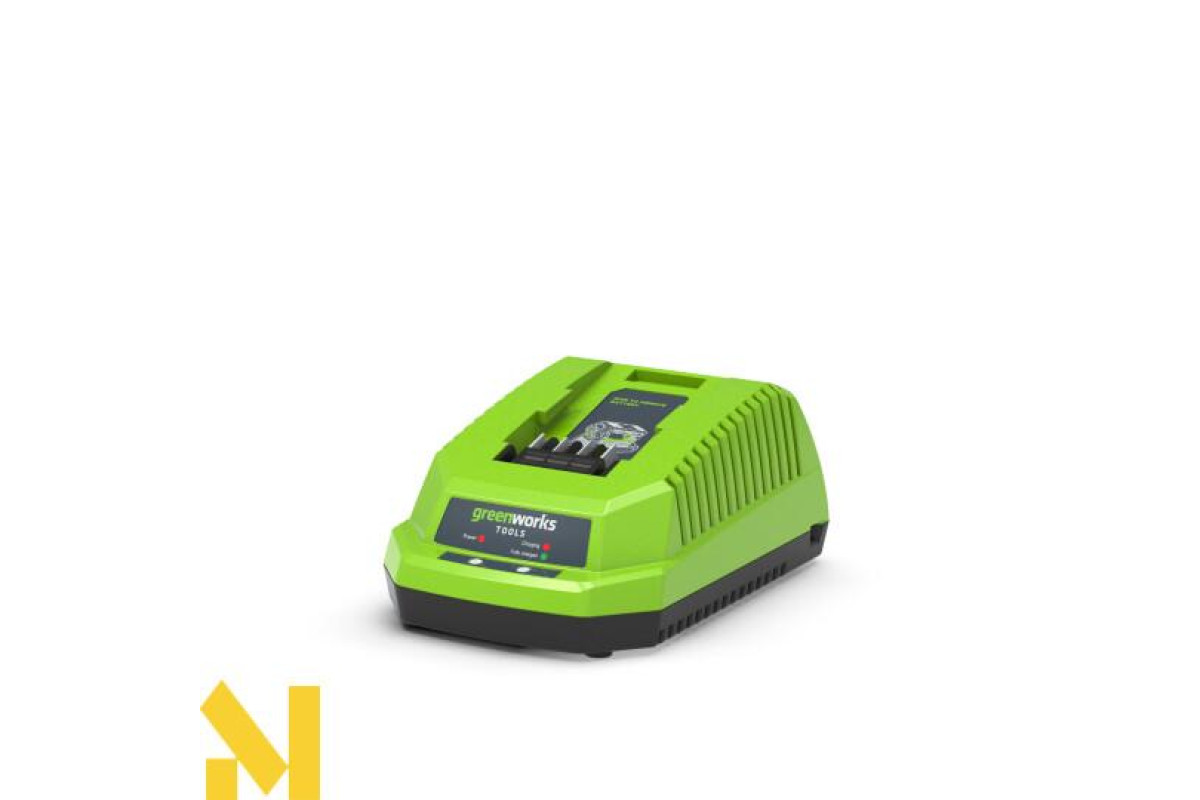 Зарядний пристрій Greenworks (модель G40C) - застосовується для зарядки акумуляторів G-MAX напругою 40 вольт і силою струму 2 А / ч (арт. 29717), 3 А / ч (арт. І 4 А / ч (арт. 29727)