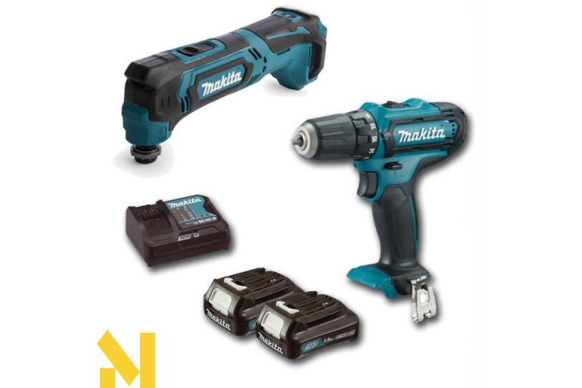 Набір акумуляторних інструментів Makita CLX206X1 - чудовий набір інструментів Makita, що працюють на літій-іонних акумуляторних батареях з потужністю 10,8 В і ємністю 1,5 А-год. Набір акумуляторних інструментів Makita CLX206X1 включає кілька найпопулярніших, корисних, важливих і необхідних інструментів для приватних і виробничих робіт: мультитул, шуруповерт. У базовій комплектації є два змінних АКБ і зарядний пристрій до них. Набір акумуляторних інструментів Makita CLX206X1 укомплектований оснащенням для мультитула і комплектом для видалення пилу.