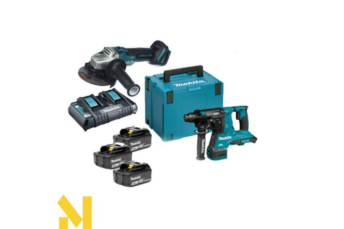 Makita DLXMUA280 - це набір акумуляторних інструментів для виконання будівельно-ремонтних робіт в умовах відсутності стабільного електропостачання. У набір входять 3 акумулятора Makita BL1850B, зарядний пристрій Makita DC18RD, універсальний кейс для транспортування Makpac 4, болгарка Makita DGA504Z і акумуляторний перфоратор Makita DHR280.