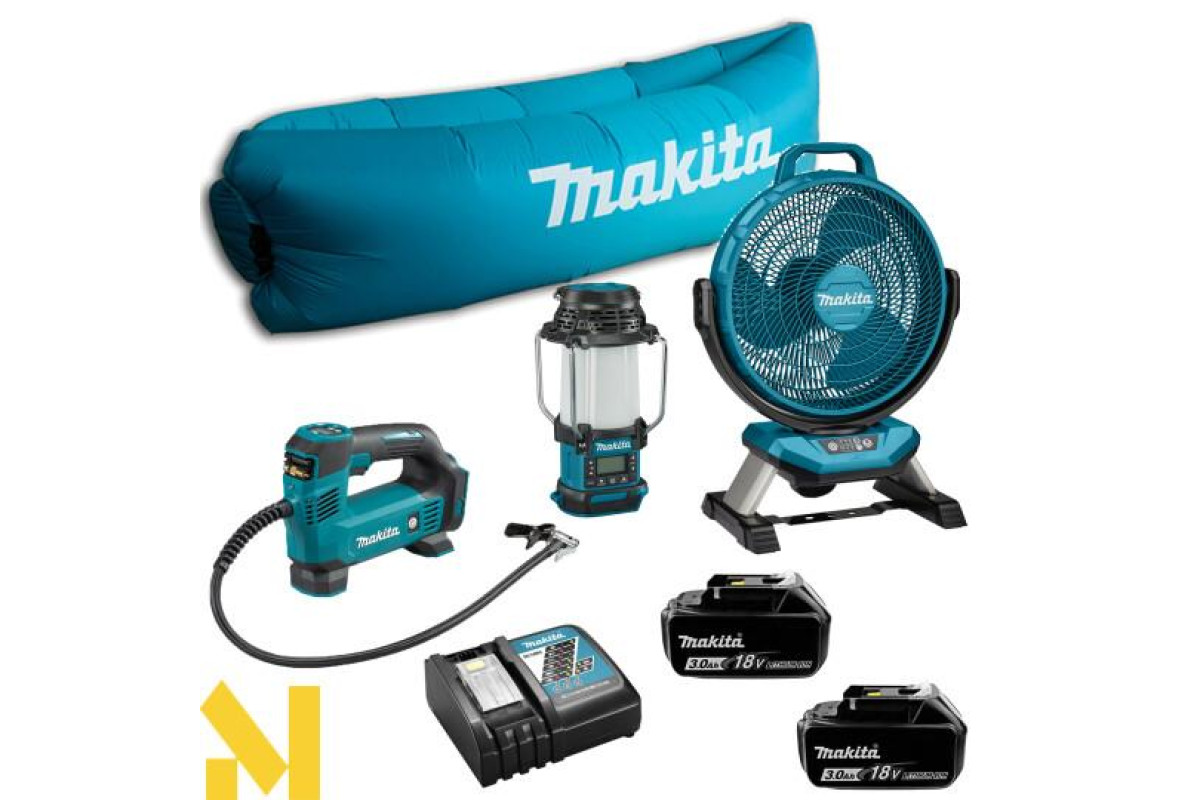 Вентилятор великого розміру, працює від батарей LXTі від мережі завдяки адаптеру, що входить до комплекту.