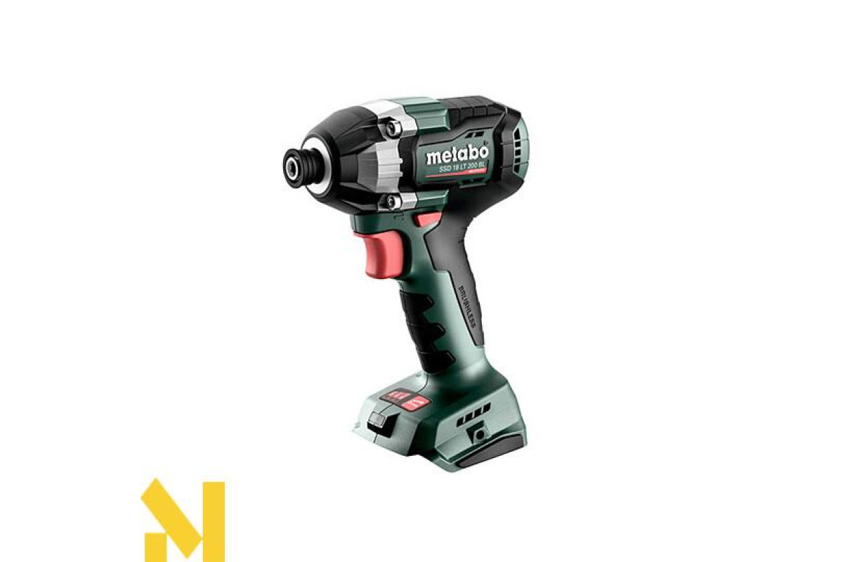 Metabo SSD 18 LT 200 BL - безщітковий двигун, крутний момент 200 Нм, 3 установки сили удару і крутного моменту, регулювання обертів від сили натискання на кнопку пуску, гальмо вибігання, реверс, невеликі розміри і вагу.