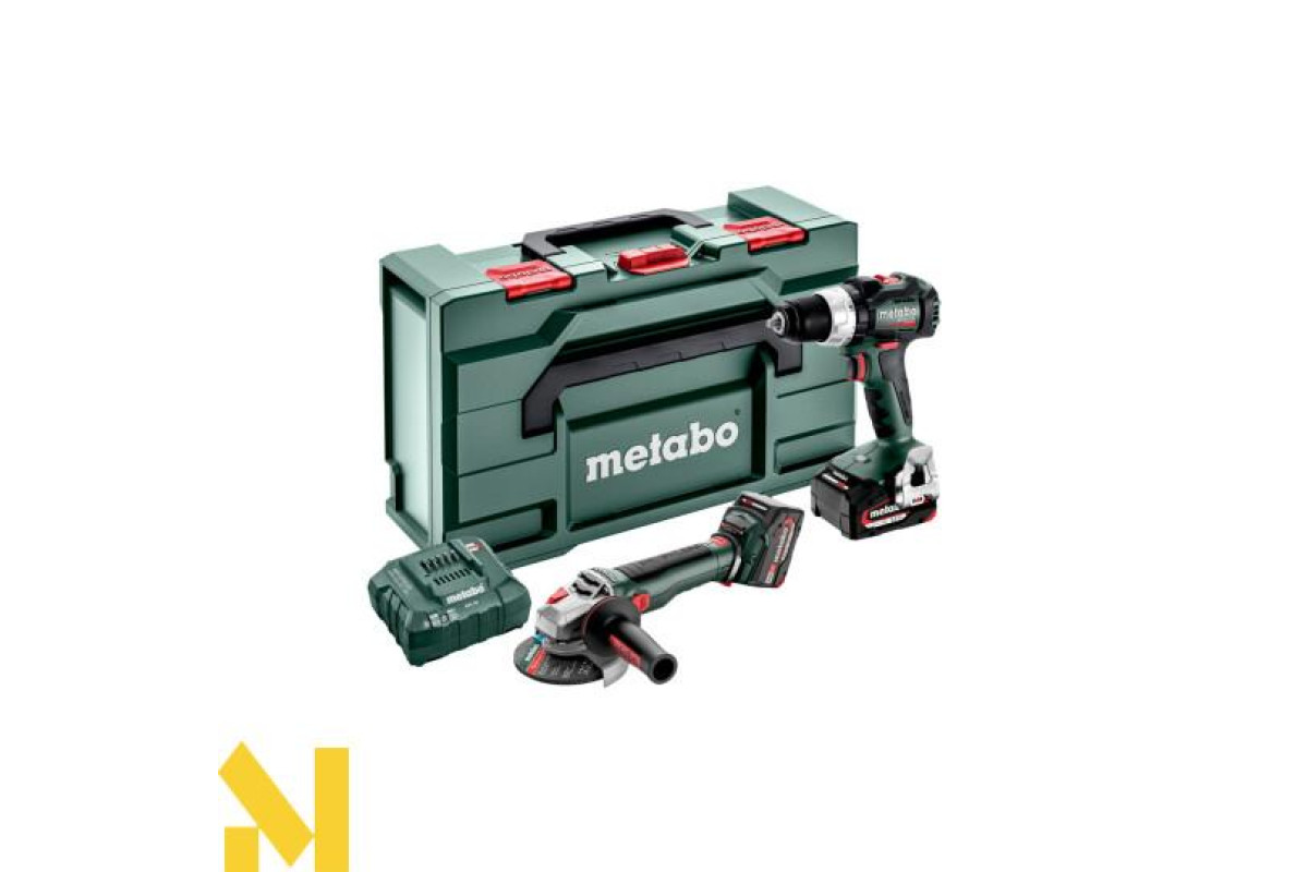 Комплект інструменту Metabo Combo Set 2.9.4 18V з потужним безщітковим шуруповертом та безщітковою болгаркою з діаметром диска на 125 мм.