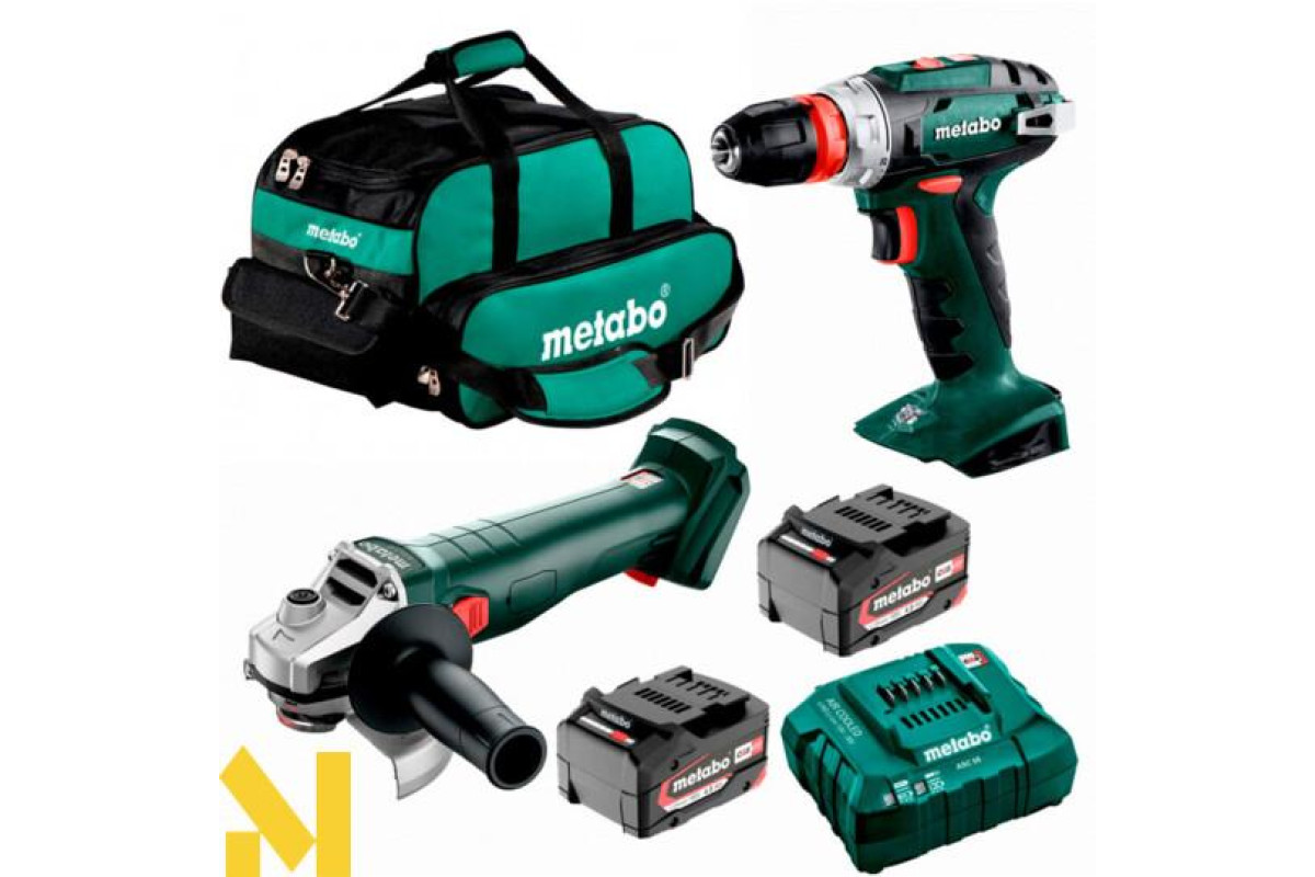 Два акумуляторних інструменти — дриль-шуруповерт Metabo BS 18 Quick і кутова шліфмашина W 18 7-125 — у комплекті з двома елементами живлення 18V 4 Ah і зарядним пристроєм ASC 55 надають максимальну гнучкість та універсальність у роботі. Незамінні в умовах, де доступ до електричної мережі обмежений або відсутній. Цей набір ідеально підходить для різних завдань у будівництві, ремонті.