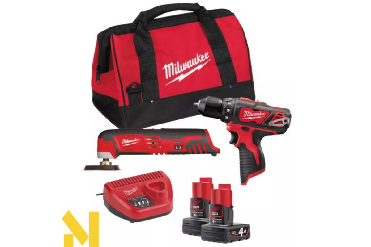 Набір Milwaukee М12 ВPP2D-402В містить дриль-шурупокрут і багатоцільовий інструмент, які працюють від акумулятора і мають світлодіодну індикацію заряду, що залишився. Всі інструменти покладені в сумку, що сприяє зручності перенесення і зберігання. У комплект входять два акумулятори, які не мають ефекту пам'яті та підходять до всіх інструментів виробника з системи М12. Ємність висока - 4 А-год, забезпечується тривалий час автономної роботи.