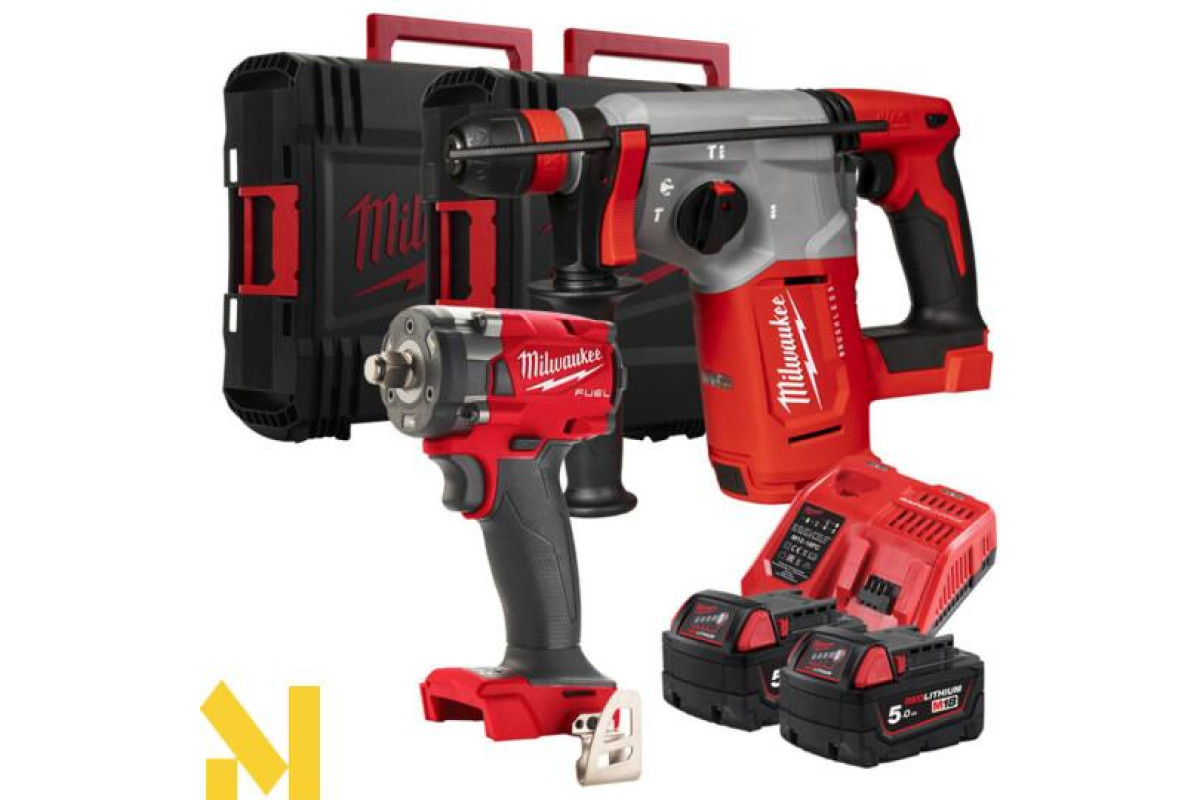 Kit Power Pack Milwaukee M18 FPP2AJ2-502X, набір акумуляторних інструментів містить два інструменти, що ідеально підходять для важких умов експлуатації:
