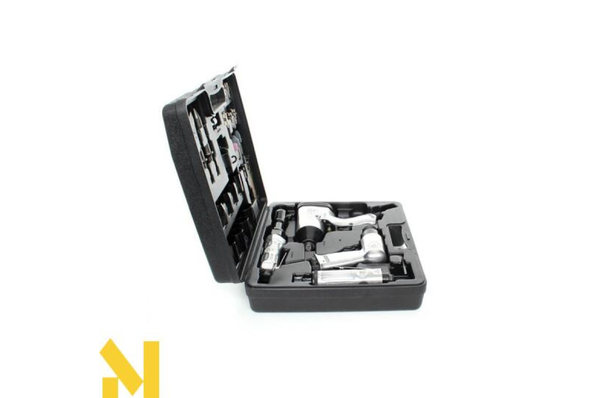 Пневматичний набір KD1421 Kraft & Dele - це пристрої, призначені як для любителів так і для професіоналів.Зручні, легкі, пневматичні пристрої широко використовуються при складанні і розбиранні всіх гвинтових з'єднань. Виготовлені зі спеціального типу хром-ванадієвої сталі (CrV).