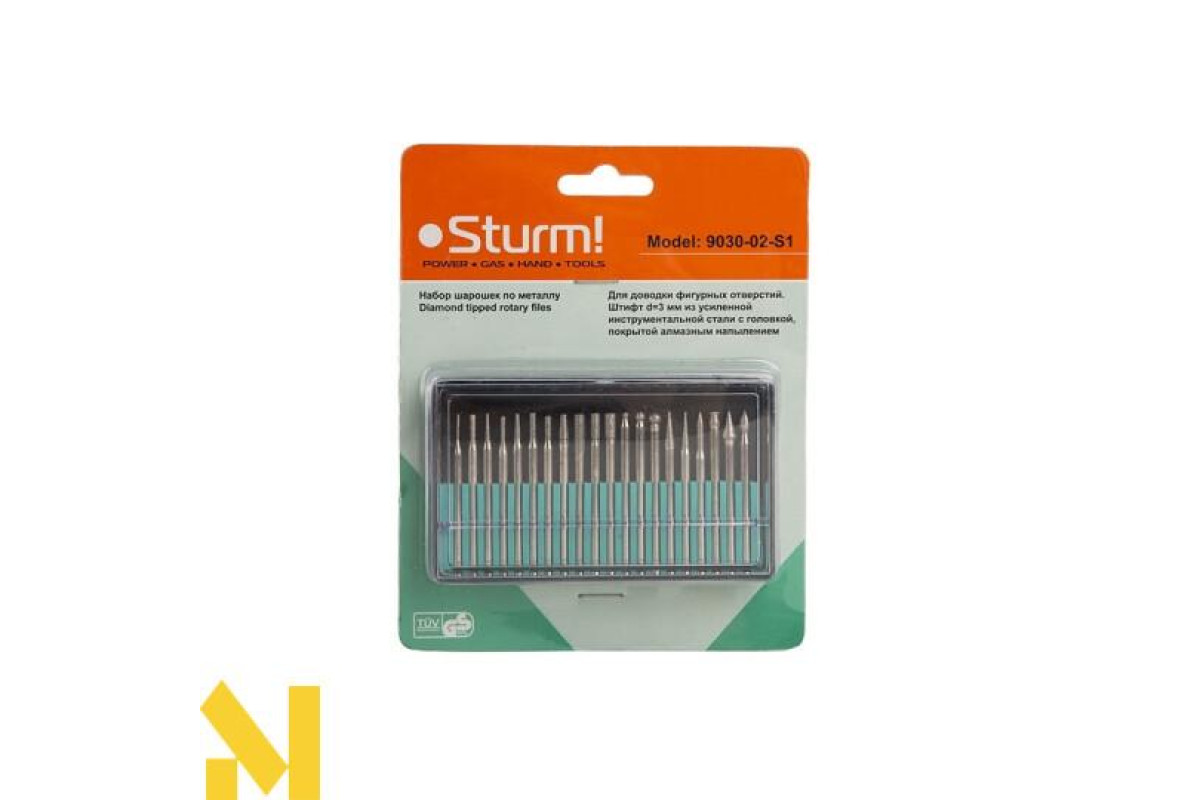 Набір шарошок Sturm 9030-02-S1 використовується для доведення фігурних отворів. Штифт діаметром 3 мм з посиленою, високоміцної інструментальної сталі забезпечує високу якість роботи і має головку, покриту алмазним напиленням.