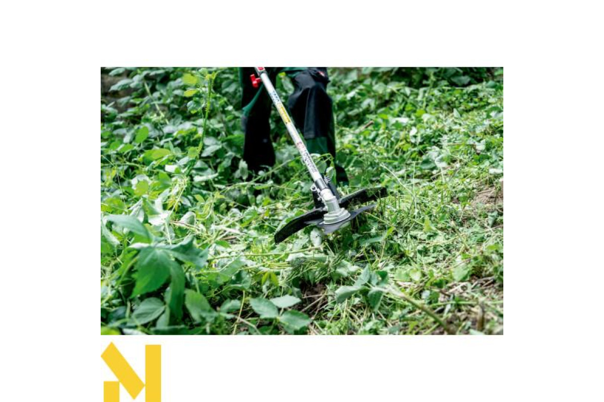 Скошування, підрізання і прочищення за допомогою насадки-мотокоси багатофункціональної системи Metabo, рішення «все в одному» для виконання багатьох робіт у садку