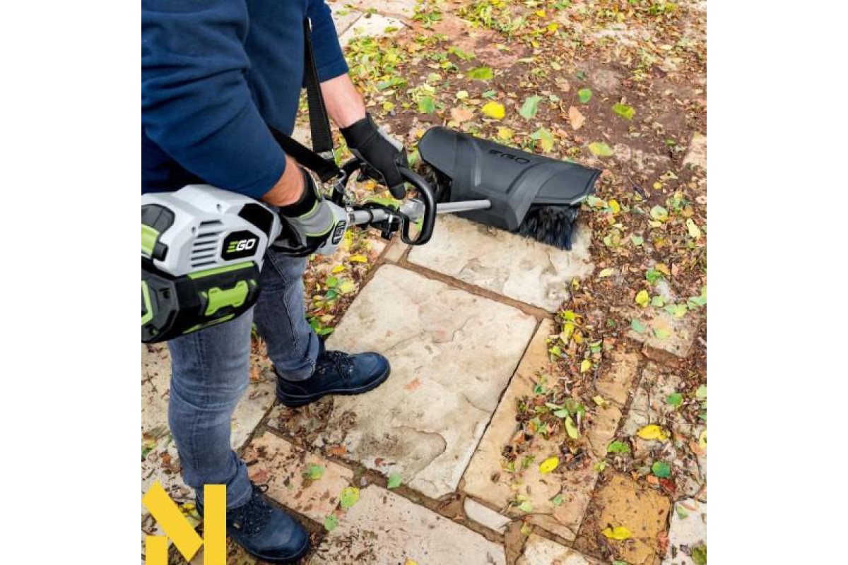 EGO BBA2100 - насадка для акумуляторної комбісистеми EGO PH1400E, призначена для швидкого прибирання території, підмітання доріжок та тротуарів. Являє собою велику циліндричну щітку на алюмінієвій штанзі без двигуна. Щітка виготовлена з високоміцних нейлонових волокон і підходить для збирання пилу, бруду, листя та інших забруднень.