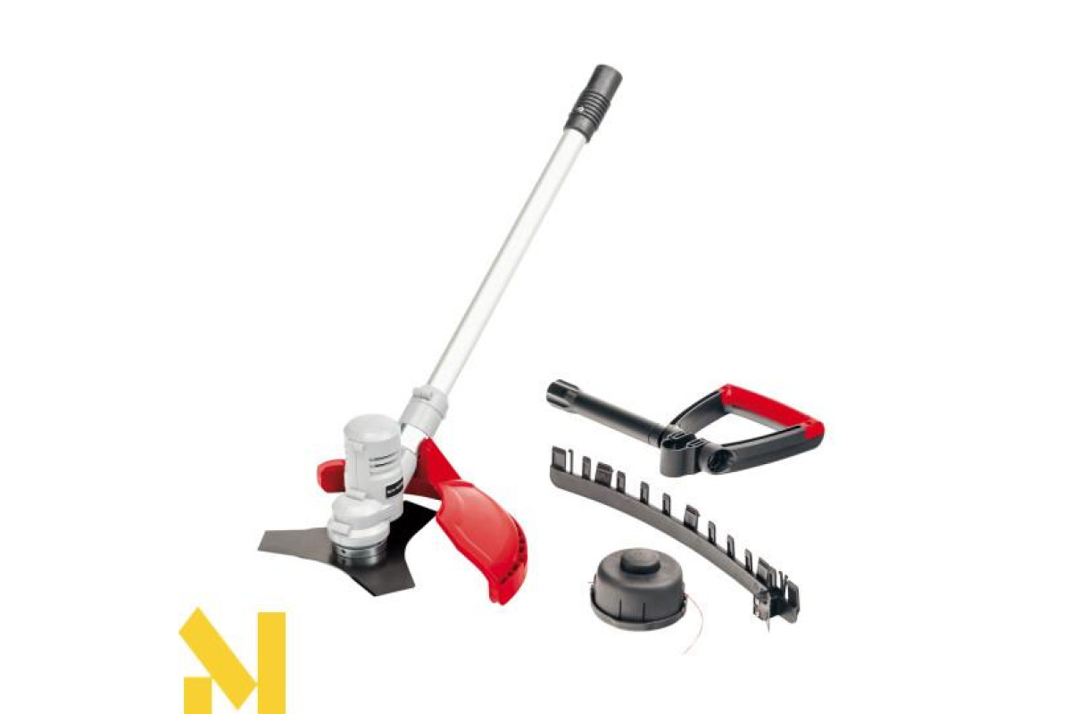 Насадка для коси з насадкою для ножа для базового пристрою Multitool MT 40. Додаткова рукоятка з упором, а також ніж і котушка для волосіні, що постачаються як аксесуари, доповнюють цей пристрій з точки зору безпеки та гнучкості використання.