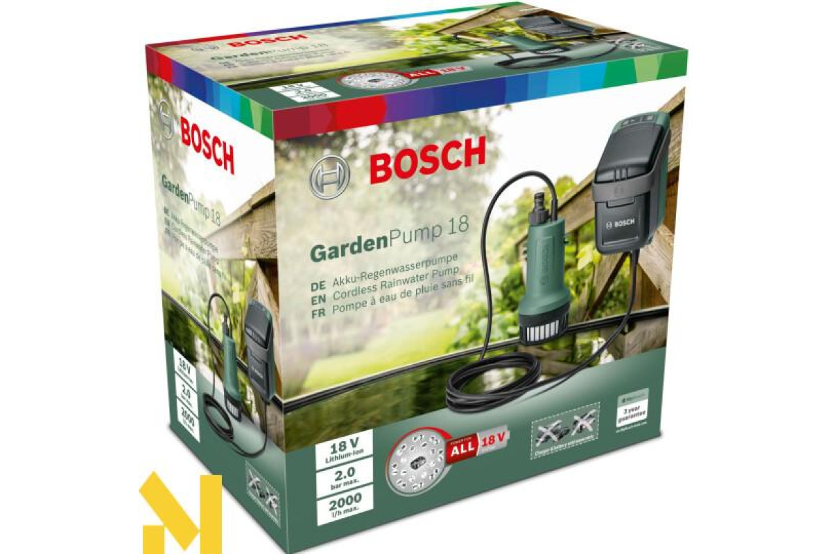 Екологічність та догляд за рослинами – акумуляторний насос GardenPump 18 здатний працювати з усіма типами резервуарів для дощової води та забезпечує прискорений та ефективний полив саду. Почніть з установки блока керування акумулятором, який можна зручно під'єднувати безпосередньо до резервуару або прикріплювати до стіни. Потім просто занурити насос дощової води в бак. Потім приєднайте садовий шланг довжиною до 25 м і розпилювальний пістолет. Цей насос дощової води оптимально підходить для природного та зручного поливу квіткових клумб, грядок з овочами та фруктами, а також горщиків та саджанців. Для оптимальної якості газонів використовуйте функцію таймера та роз'єм для захисту від підсмоктування з розпилювачем та іригаційними системами.