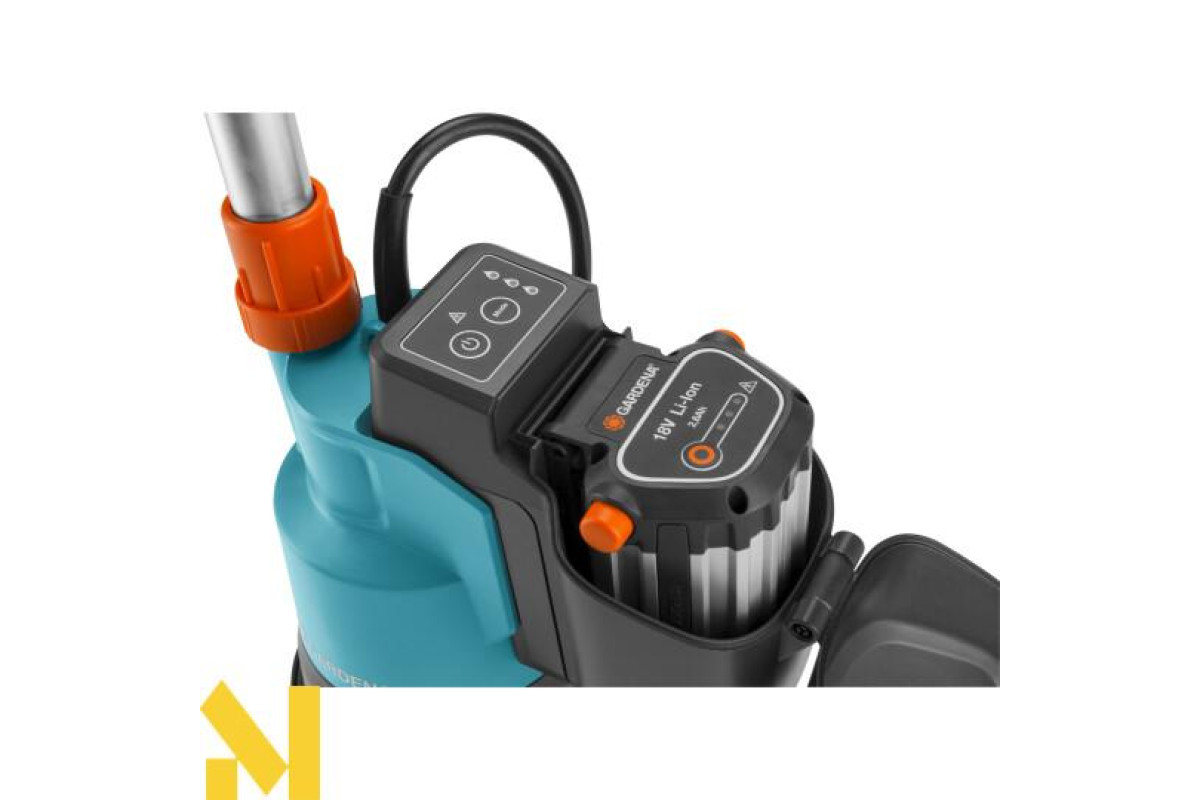 За допомогою водяного насоса Gardena 2000/2 Li-18 можна використовувати воду з діжки для збирання дощової води для поливу рослин із використанням форсунок, розпилювачів або спринклерів дощувачів від Gardena. Якщо поблизу є діжка для збирання дощової води та джерело електроживлення для заряджання акумуляторної літій-іонної батареї насоса, його можна дуже зручно використовувати для поливу рослин. Крім того, насос використовується для виконання дренажних робіт. Зарядний пристрій та акумуляторна батарея входять у комплект постачання. У насосі використовується проста в обслуговуванні акумуляторна батарея Gardena напругою 18 В, яку можна заряджати в будь-який час без створення ефекту пам'яті. До переваг змінної літій-іонної батареї належать потужність, низька потреба в обслуговуванні, гнучкість перезаряджання і простота заміни. На світлодіодному дисплеї відображається поточний рівень заряду батареї. Батарея Gardena System Li-18 сумісна з усіма модулями системи Gardena HeartBeat із напругою 18 В.