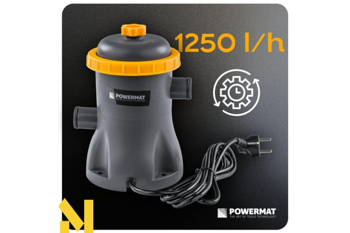 Продуктивність 1250 л/год була підібрана таким чином, щоб забезпечити ефективну фільтрацію без перевантаження басейнової установки. Вода циркулює рівномірно, що сприяє регулярному очищенню всього резервуара.