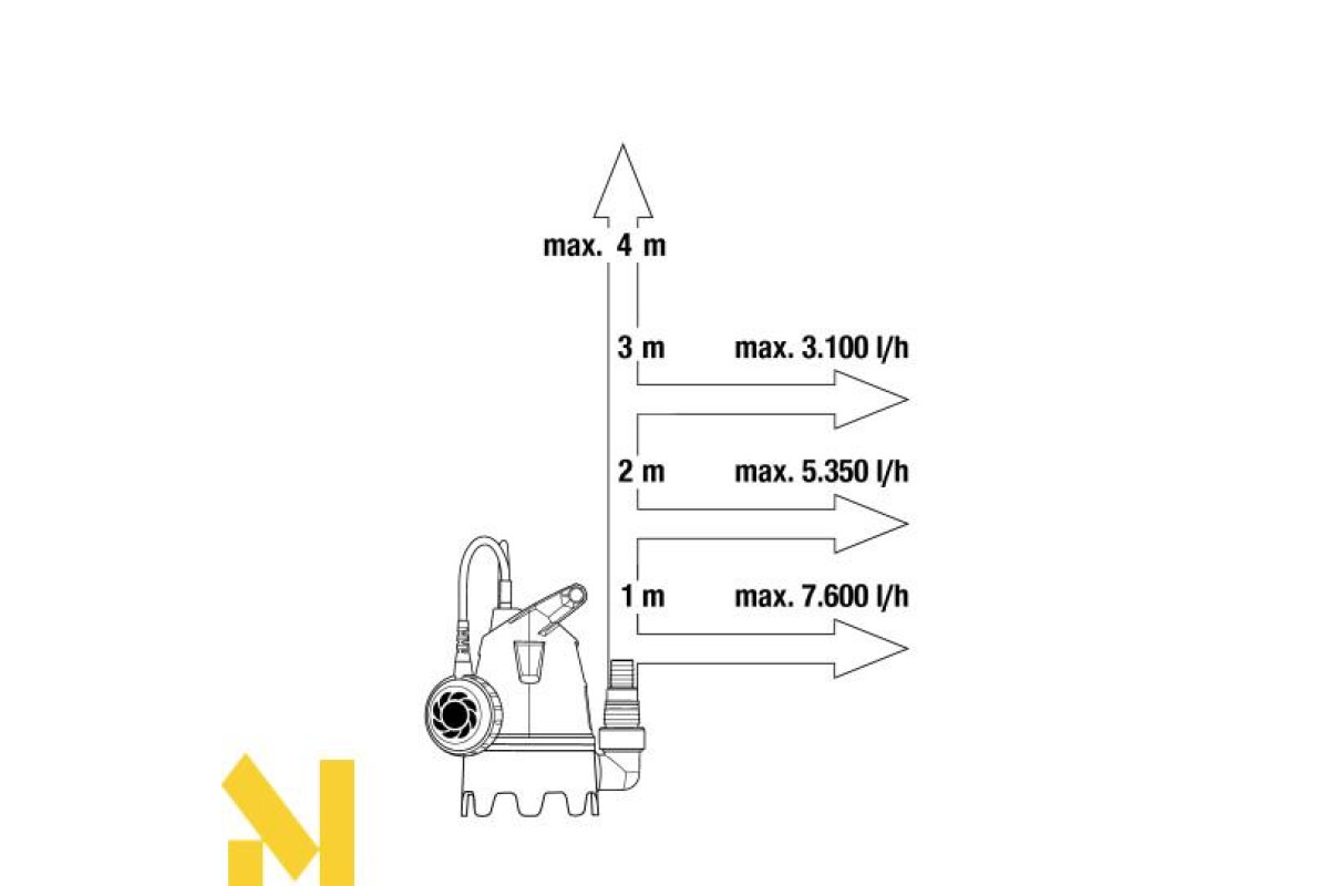 Насос може функціонувати на максимальній глибині занурення в 6 метрів.