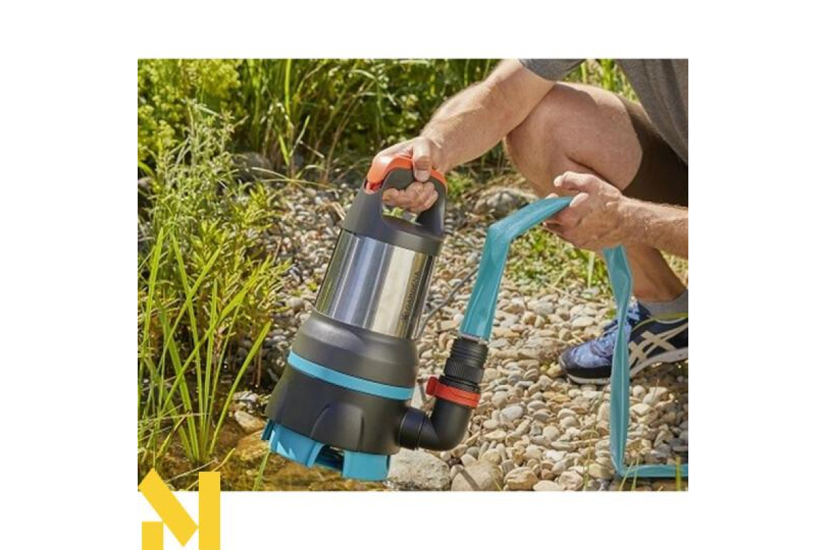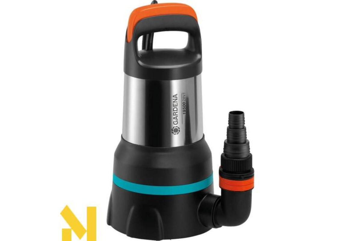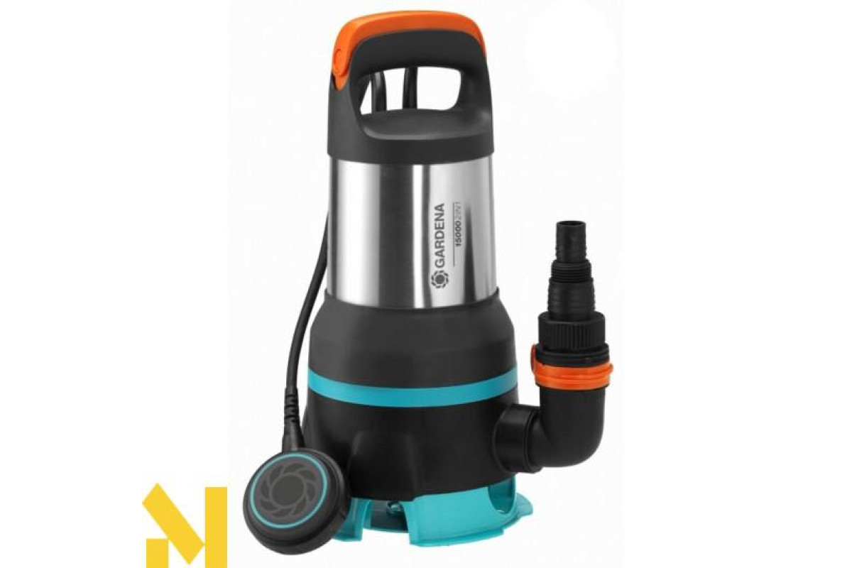 Сучасний занурювальний насос Gardena для брудної та чистої води 15000 відрізняється потужністю 550 Вт із продуктивністю до 15000 літрів на годину.