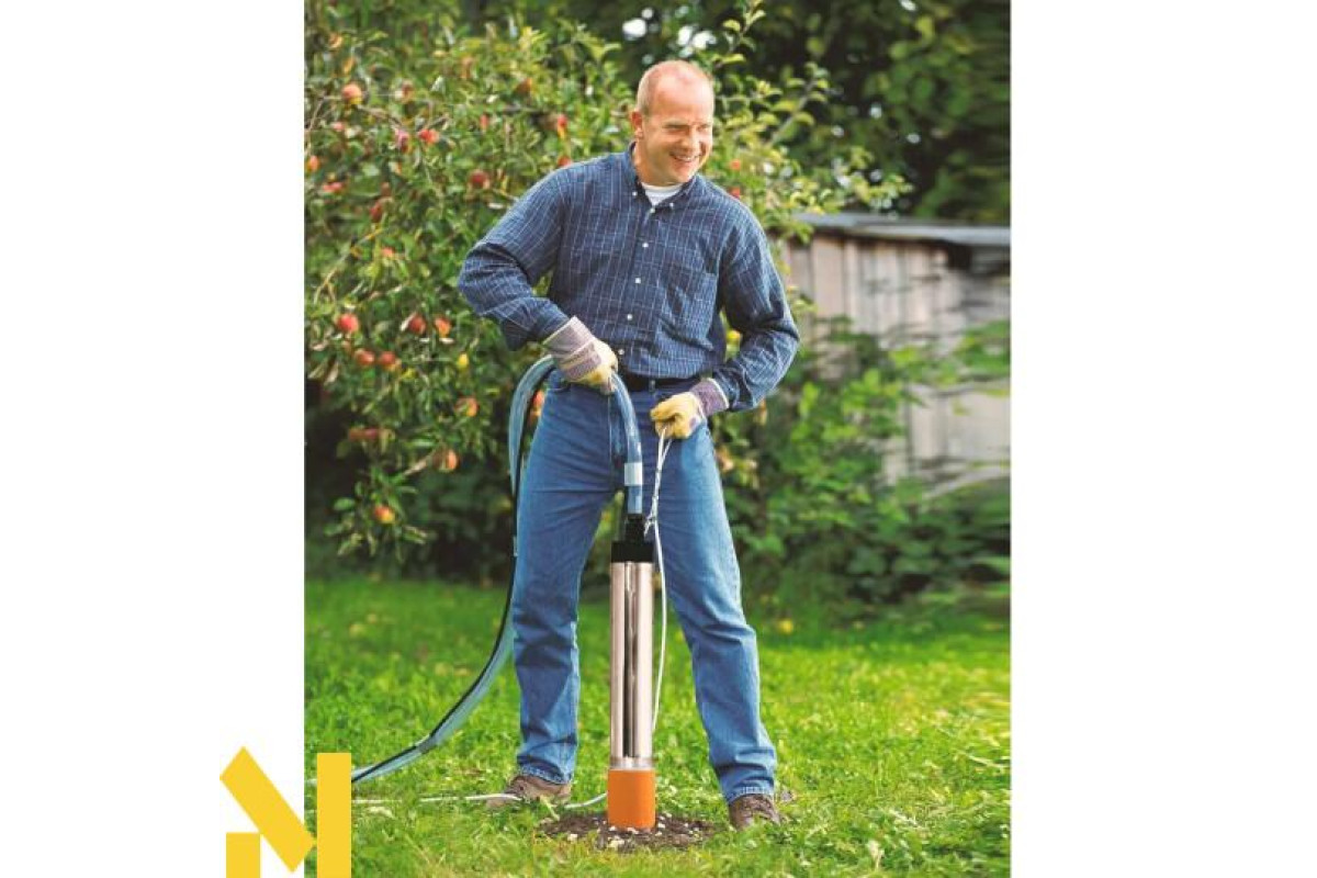 Міцні завушини для підв'язування насоса і зручне розташування отвору для підключення шланга