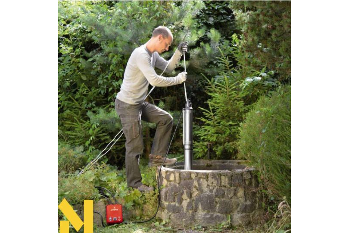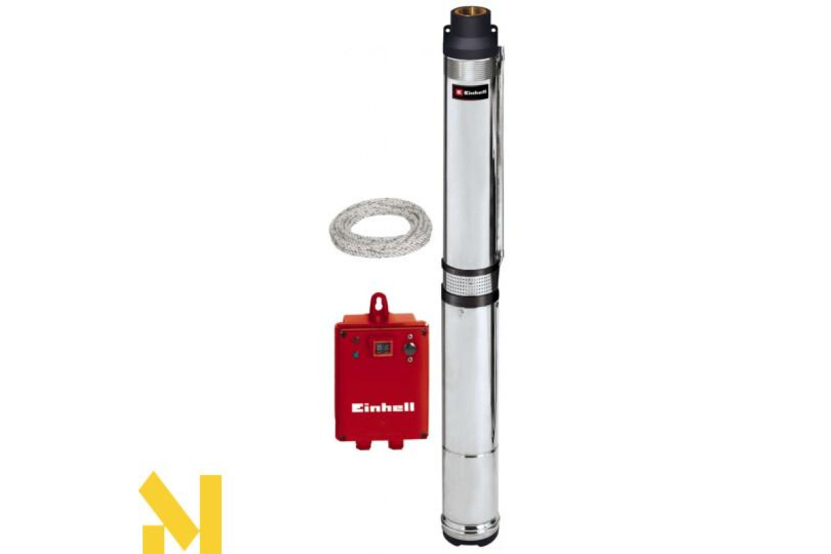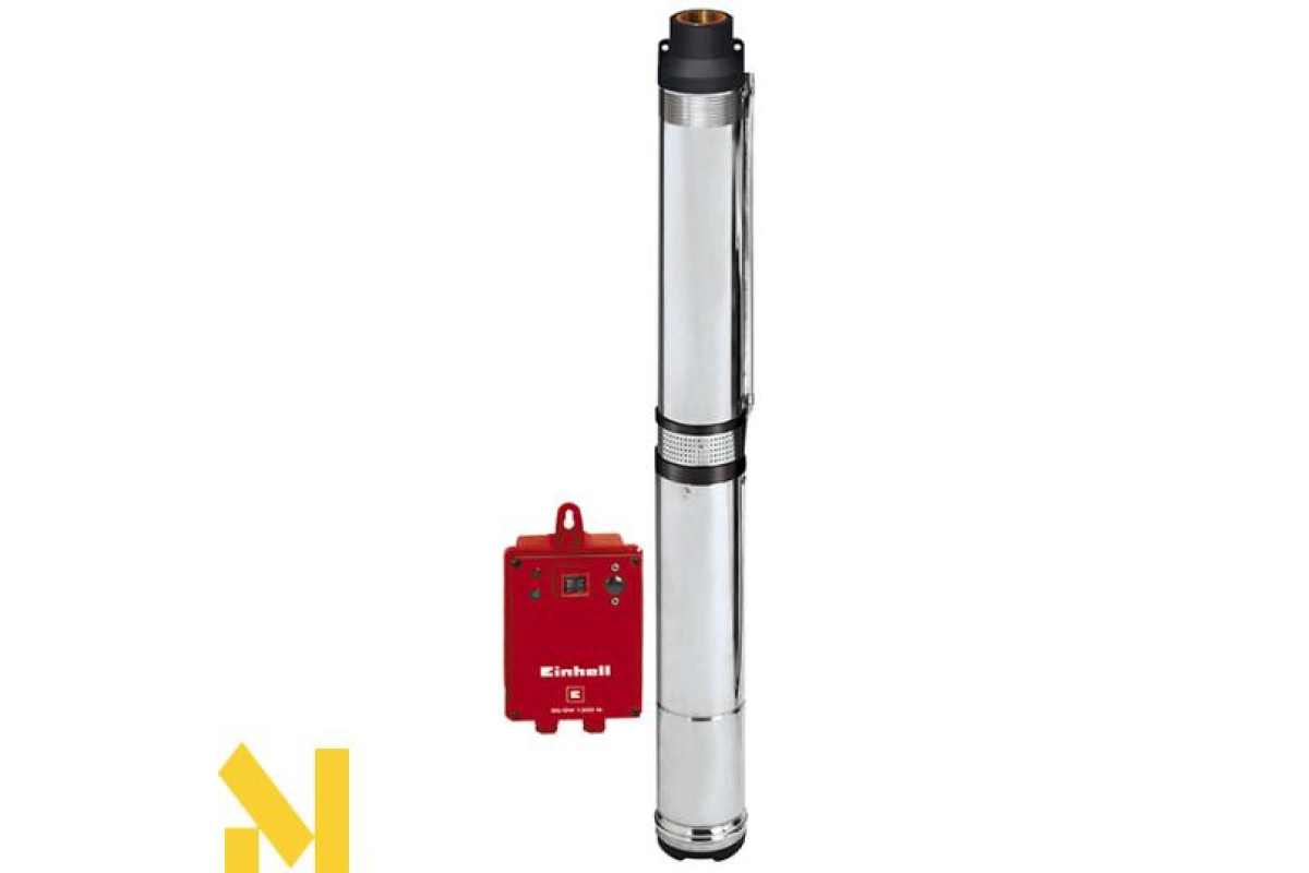 Новий надійний глибинний насос для чистої води Einhell GC-DW 1300 N серії classic для подачі чистої води з ємностей, резервуарів, колодязів і т.д. Високоякісні матеріали, наприклад приводний вал, корпус і все кріплення виготовлені з нержавіючої сталі - це гарантує стыйкысть до корозії і довгий термін служби. Насос можна безпечно опустити на глибину до 19 метрів. Чисту воду можна перекачувати до макс. висоти 65 м завдяки 10-ступінчастою крильчатці з тиском до 5,5 бар. Потужний електродвигун потужністю 1300 Вт дозволяє накачати 5000 л / ч. Вбудована в мотор-термозахист захищає насос від перевантаження. Насос оснащений легко доступним шланговим з'єднанням зверху з вбудованим зворотним клапаном. Насос оснащений зовнішньої комутаційної коробкою і з'єднувальним кабелем живлення довжиною 23 метри і 20 м мотузкою для занурення насоса.