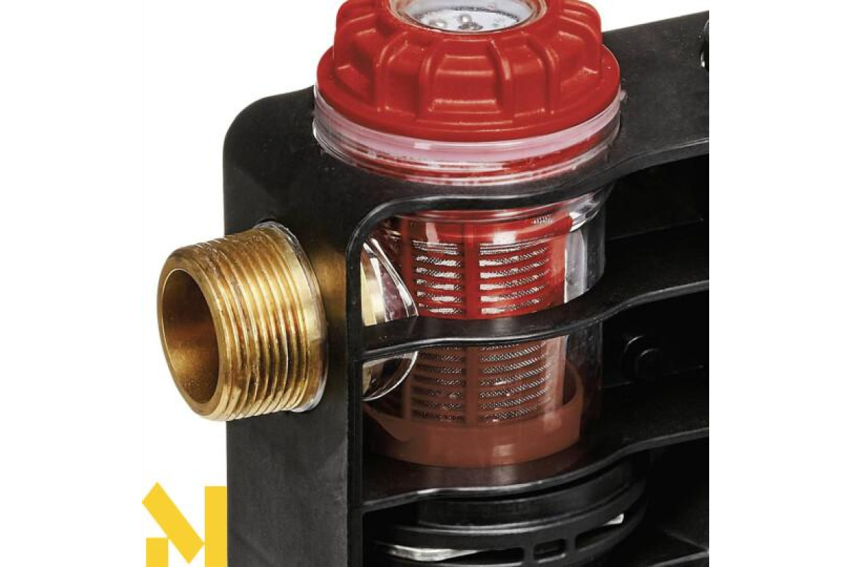 Автоматична побутова система водопостачання з кормусом із неіржавкої сталі має практичний індикатор всмоктування та рівня води, а також великий водяний наповнювач і водовідливний гвинт, щоб забезпечити її захист від морозу. Для перевірки можливого бруду у фільтрі грубого очищення є індикатор бруду. Датчик витрати оснащений світлодіодним дисплеєм.
