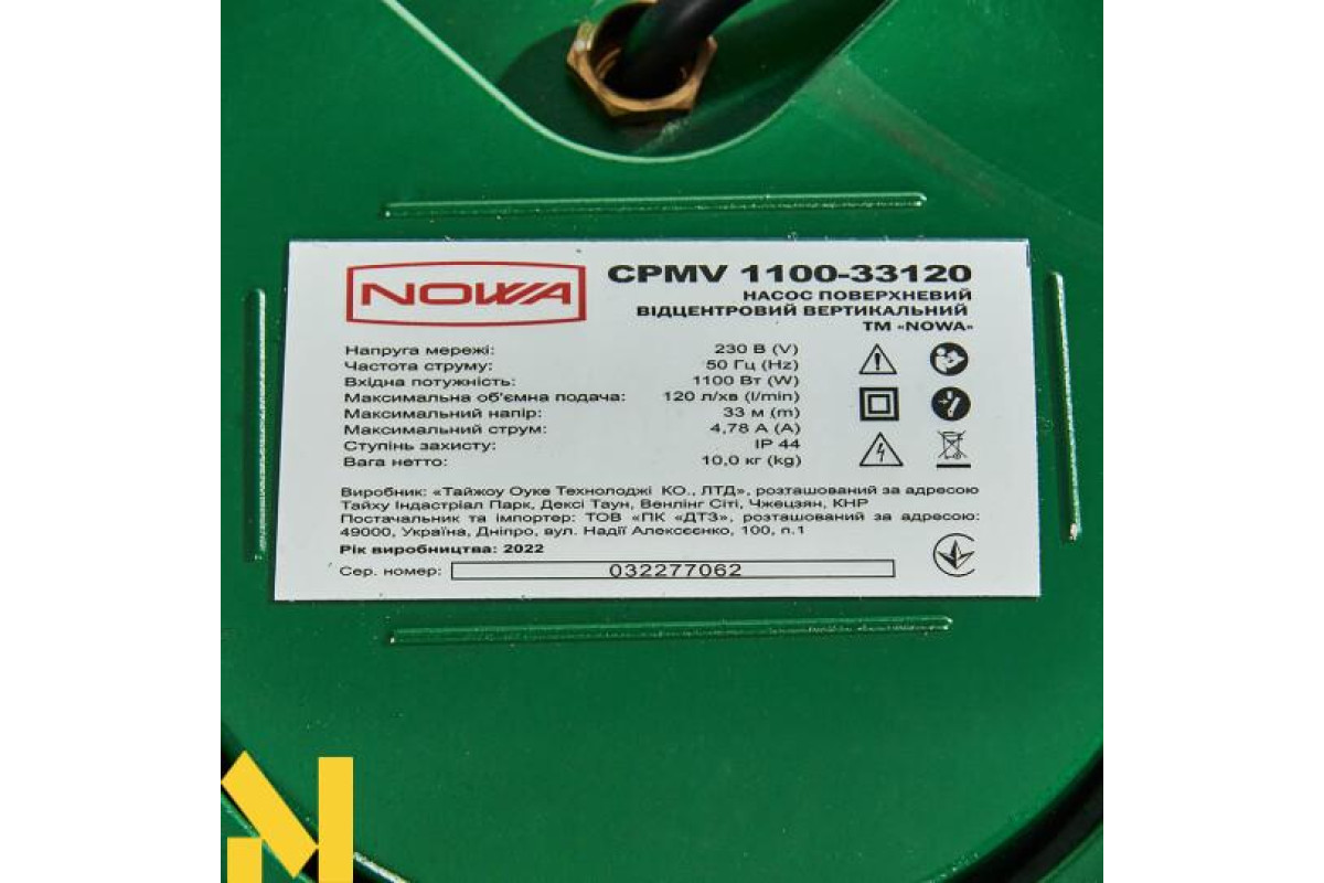 Насос поверхневий відцентровий вертикальний NOWA CPMV 1100-33120 призначений для перекачування чистої холодної води в системах водопостачання і зрошування.